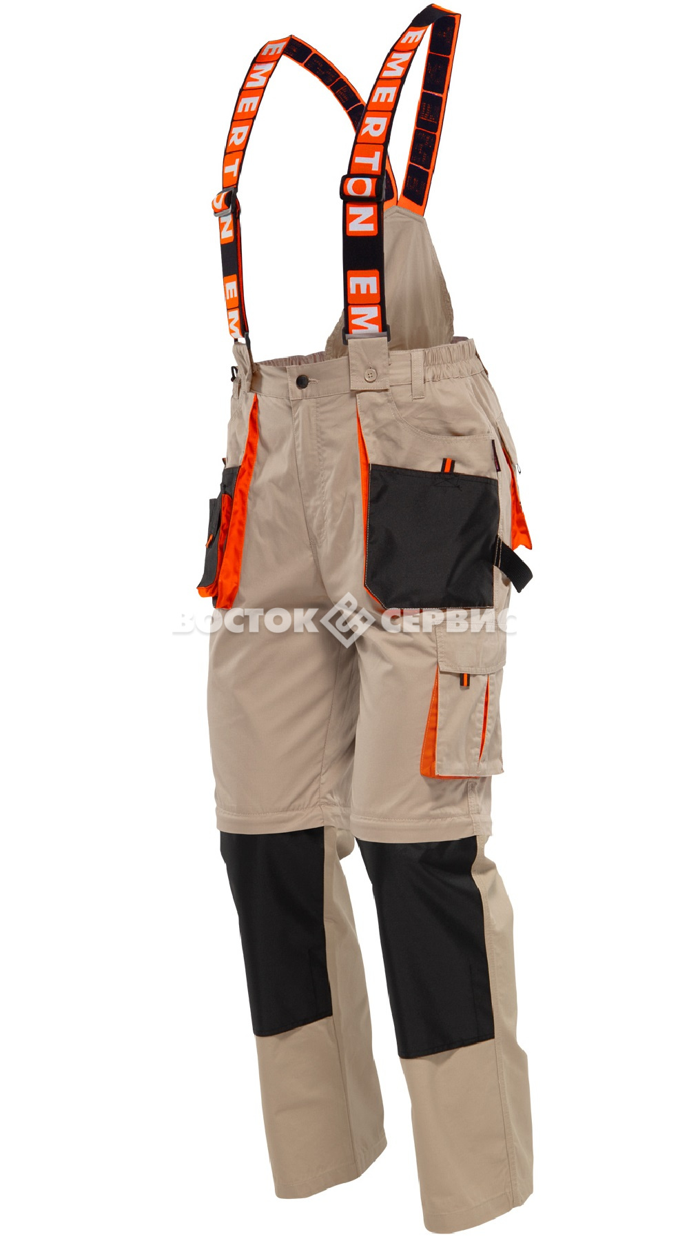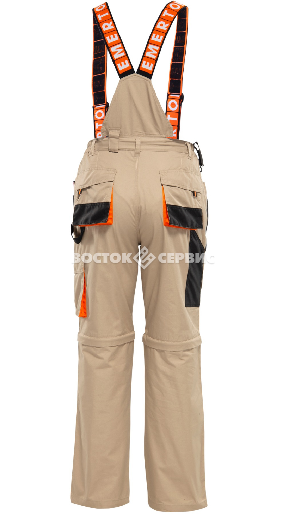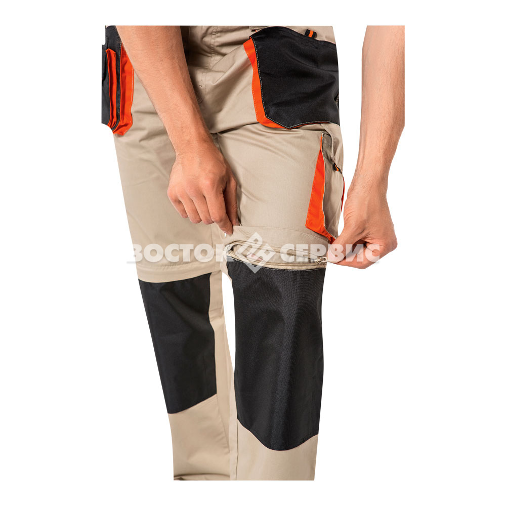 Карманы: верхние двойные объемные, передний накладной карман для рации, боковой усиленный карман дляинструментов, боковой объемный карман с клапаном, петля для инструментов, задние накладные объемные карманы с усилением по низу.