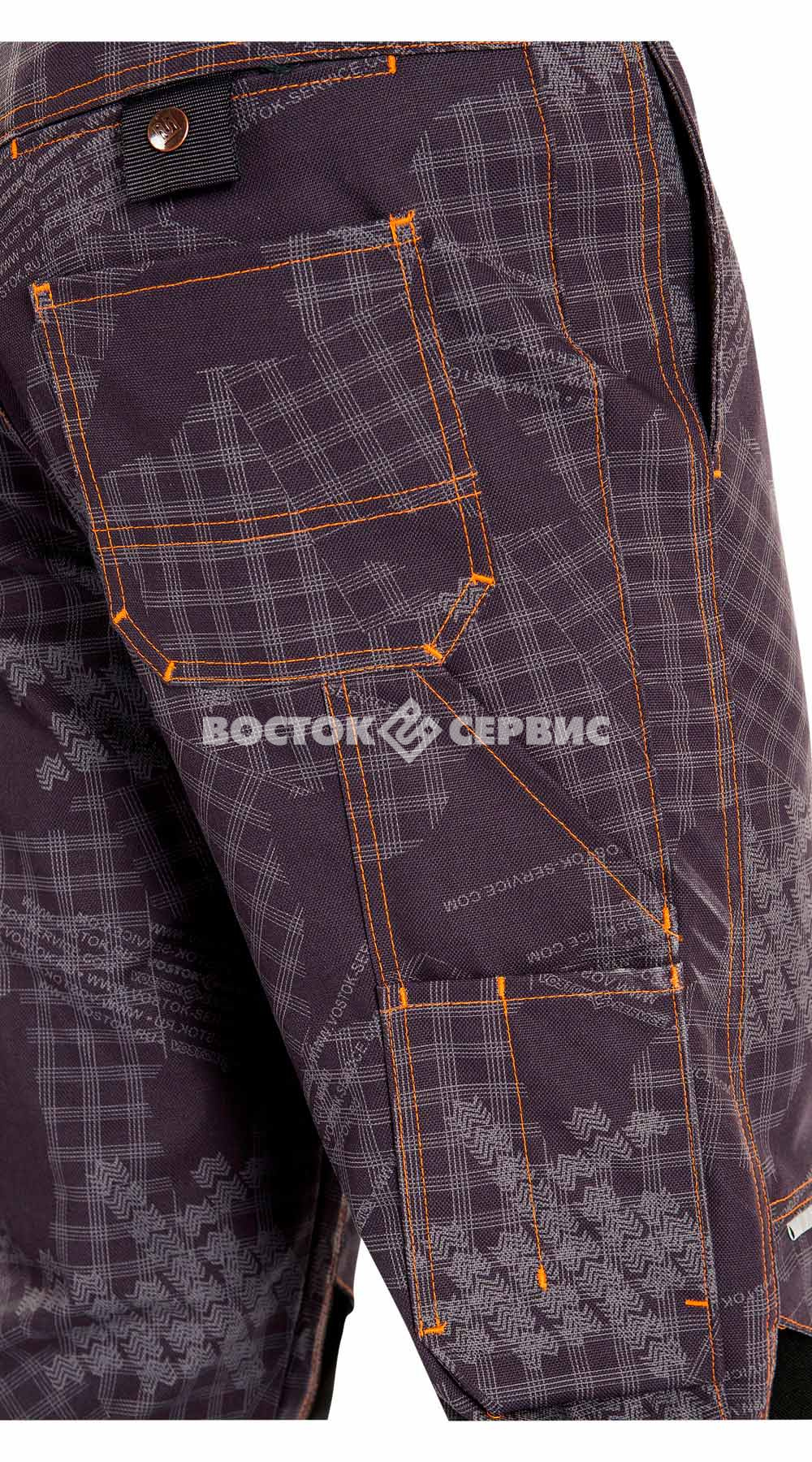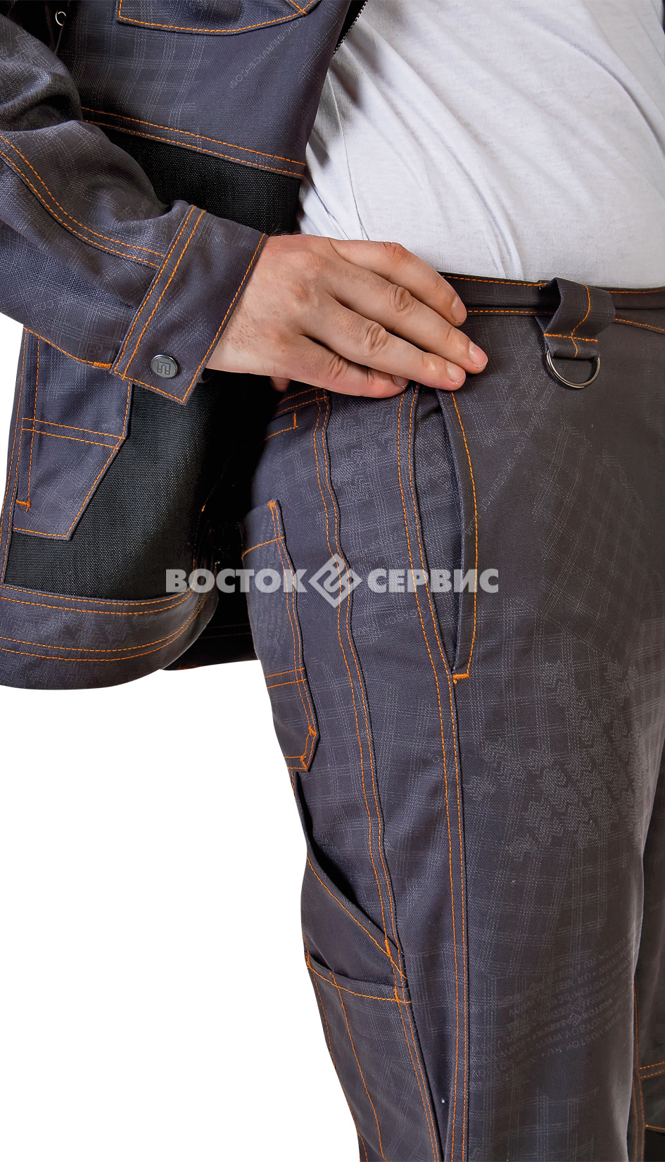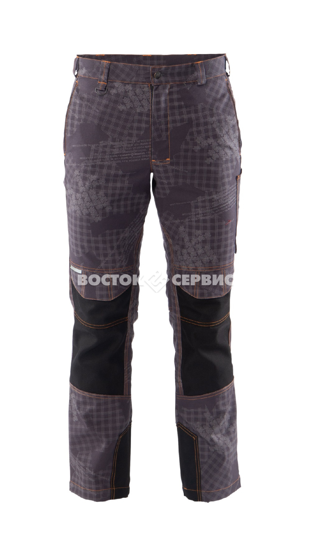 Усилительные накладки: в области коленей со входом для амортизационных вкладышей, по низу шаговых швов