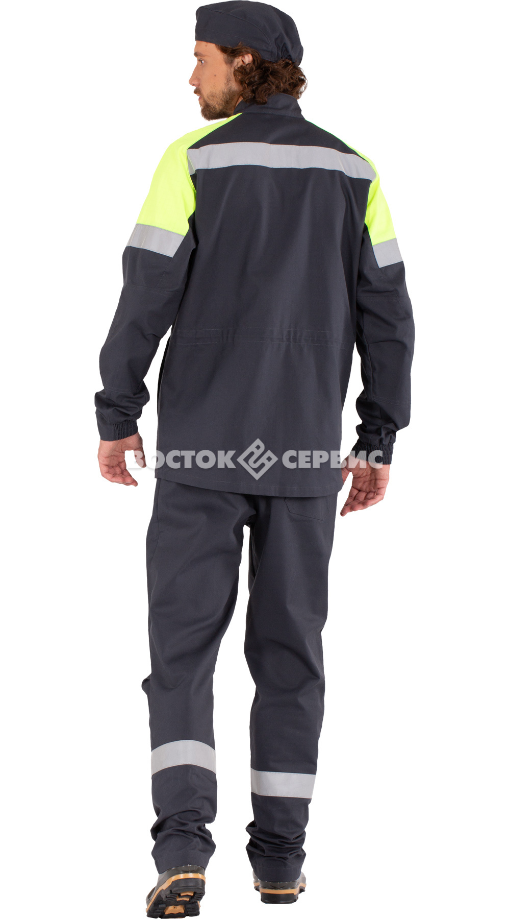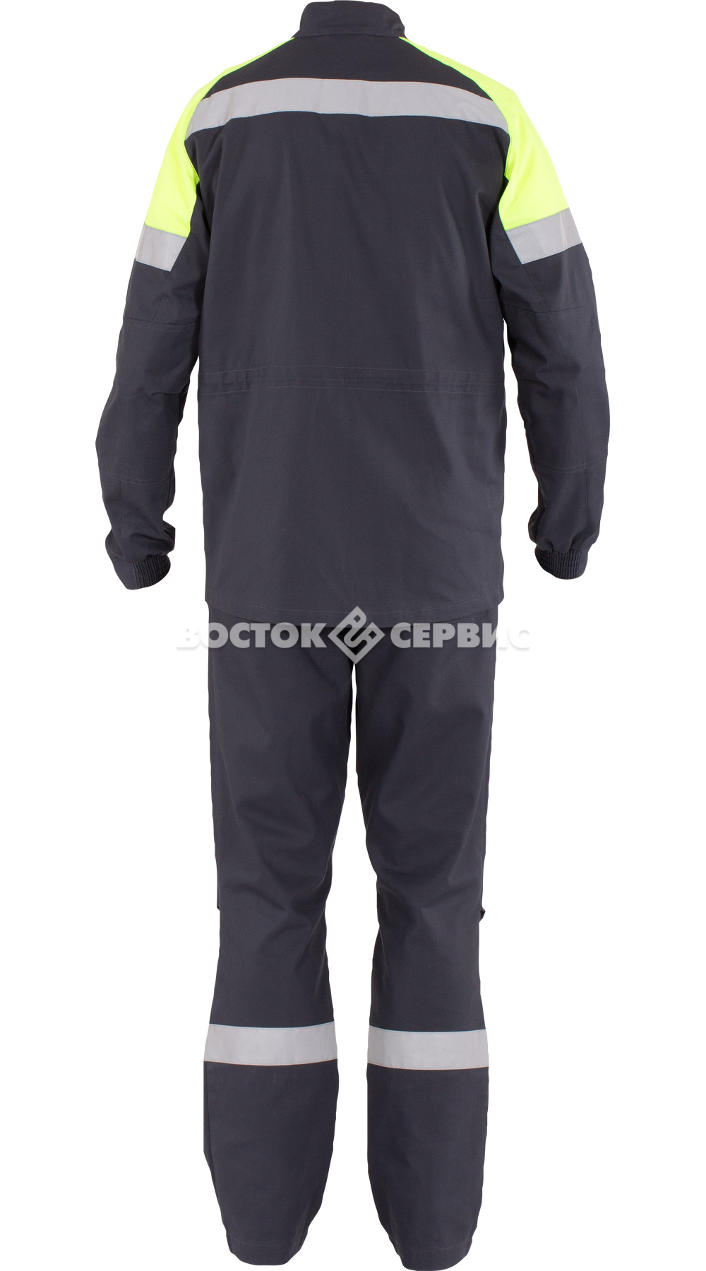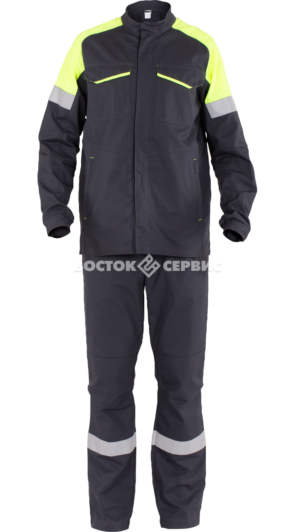 Карманы: на верхней части левой полочки накладной карман, двухсекционный с клапаном с текстильной застёжкой, на верхней части правой полочки накладной карман с клапаном с текстильной застёжкой. Боковые нижние карманы с застежкой на тесьму "молния" в куртке. Передние половинки брюк с карманами с отрезным бочком, на правой задней половинке, накладной карман с клапаном.