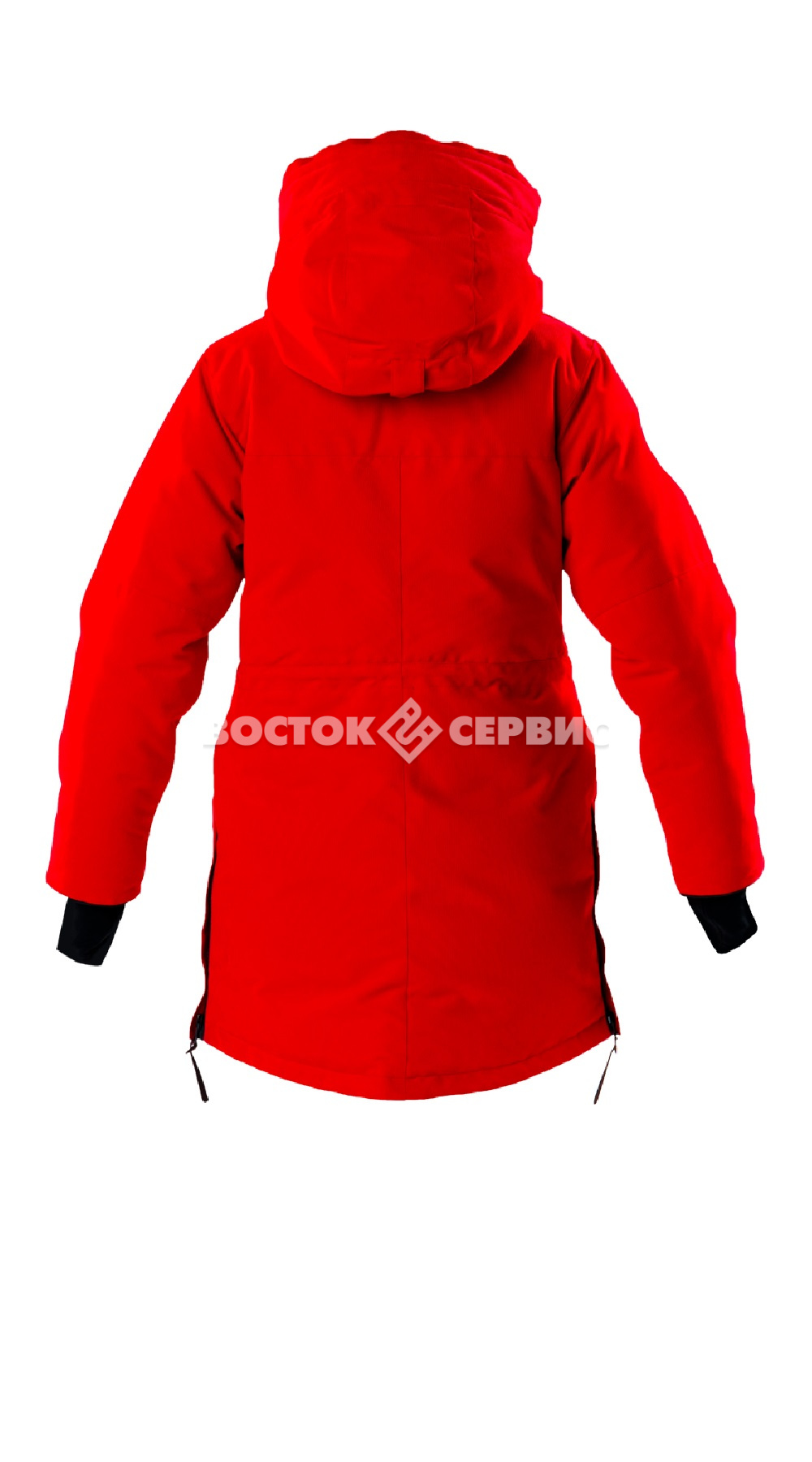 - Удлиненный силуэт. Парку можно носить с брюками и платьями, ботинками и высокими сапогами. Длина по спинке у 44 размера — 82 см, у 46 — 84 см. В парке будет комфортно в том числе высоким девушкам. При этом длина куртки не стесняет движений — боковые молнии в нижней части легко расстегнуть при необходимости.