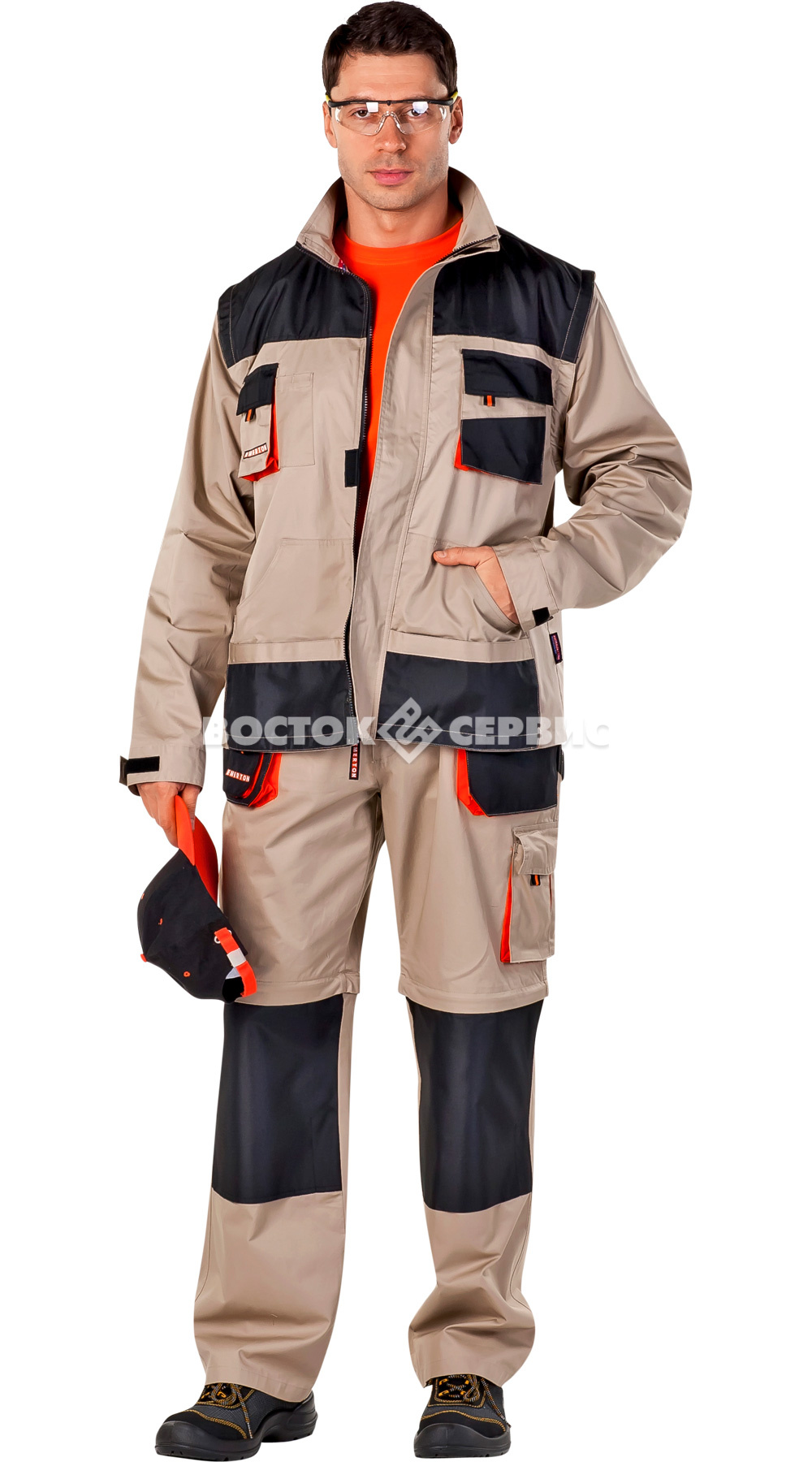 Усилительные накладки: в области локтей, на кокетках и на карманах в местах наибольшего истирания.