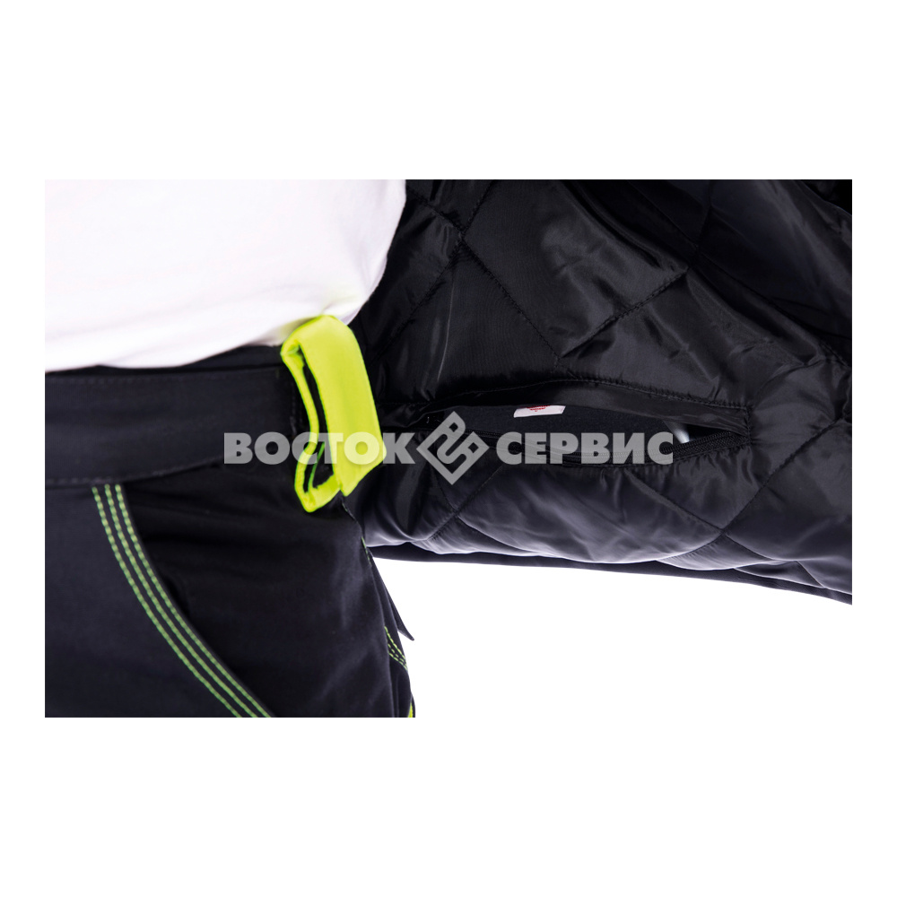 Карманы: нагрудный на молнии, два боковых и два закрывающихся внутренних кармана