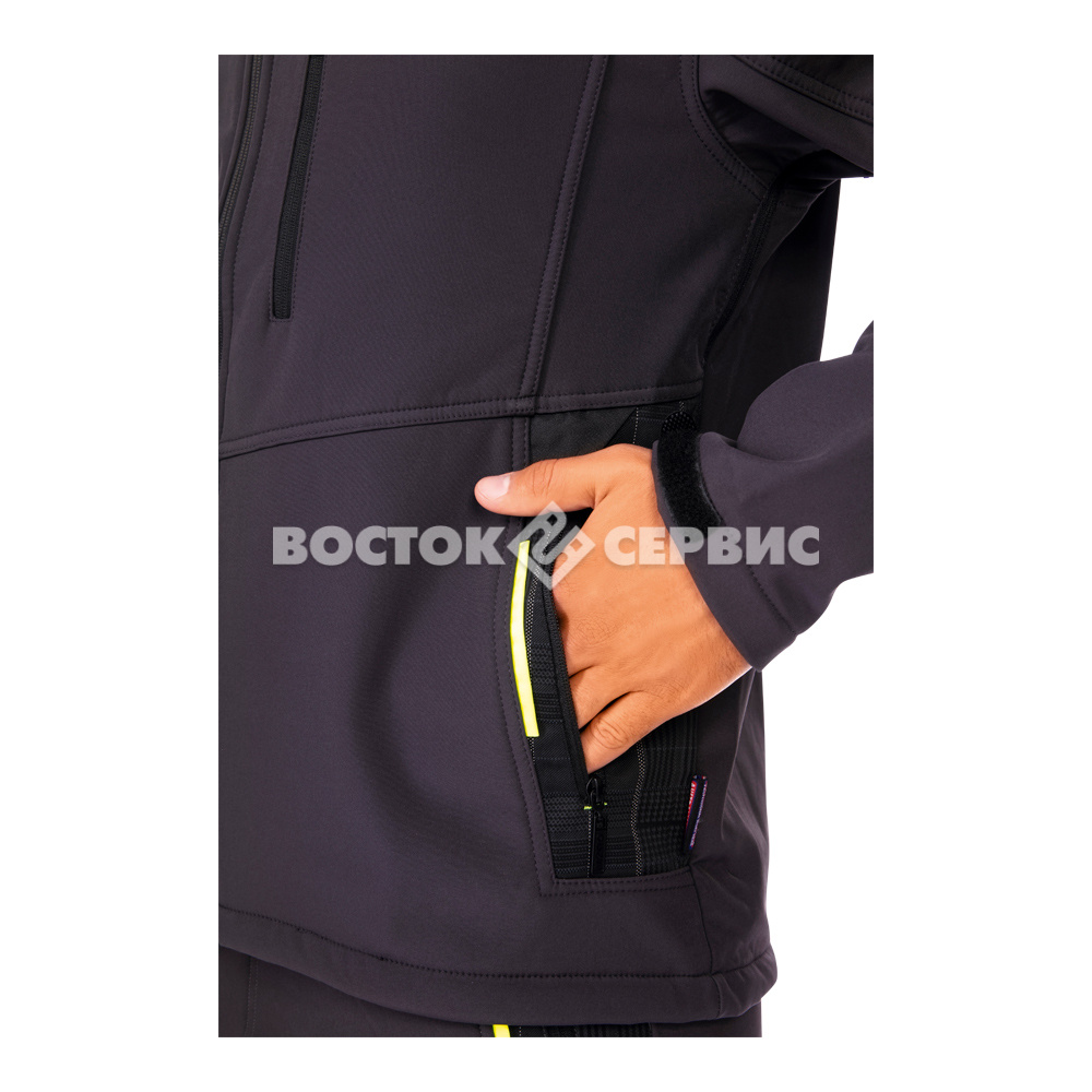 Материал: трехслойный софтшелл (первый слой - плащевая ткань, второй - TPU-мембрана, третий - флис).