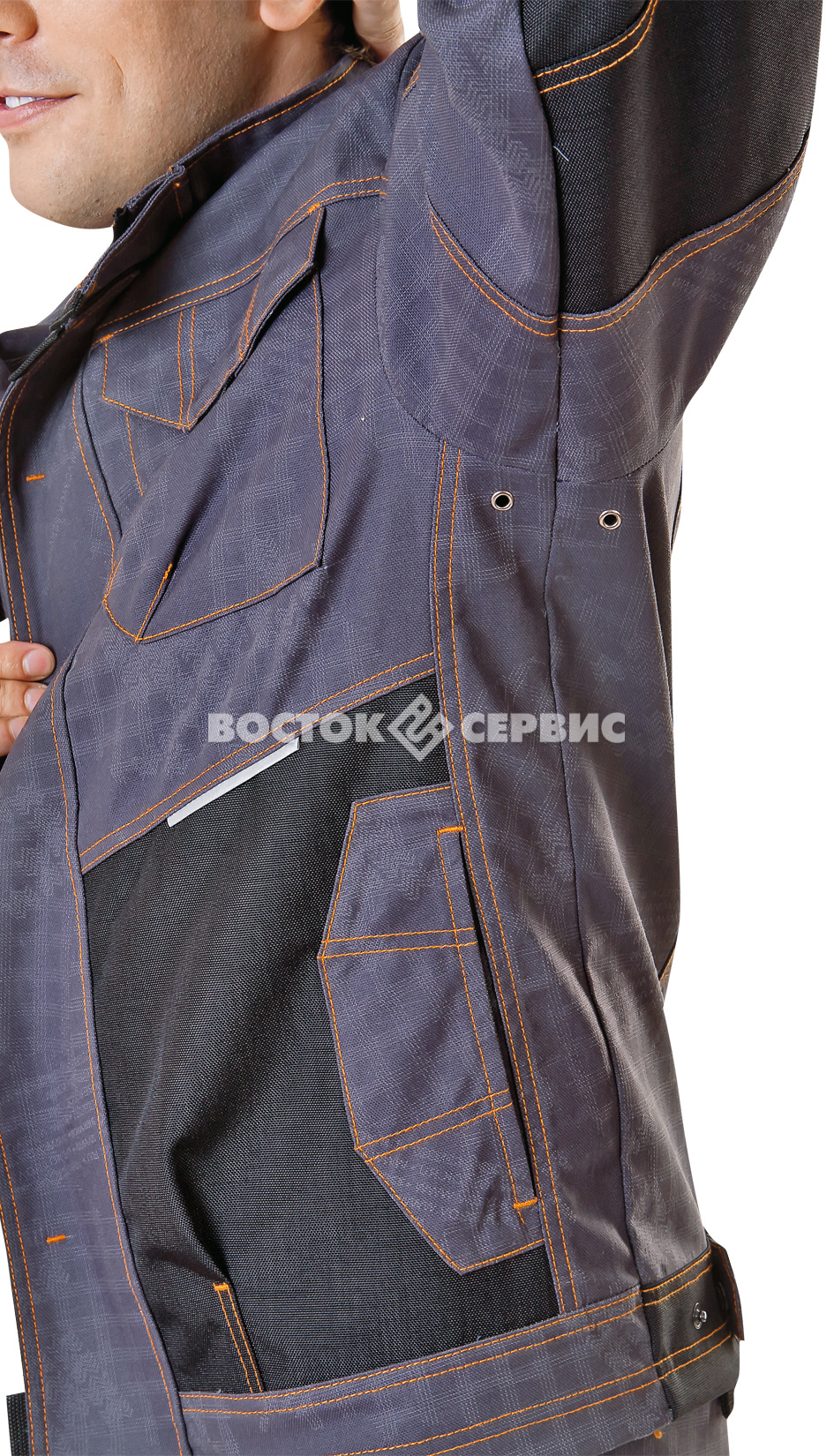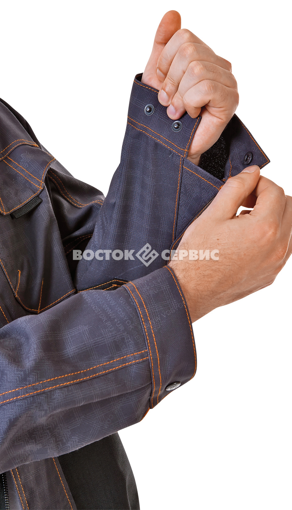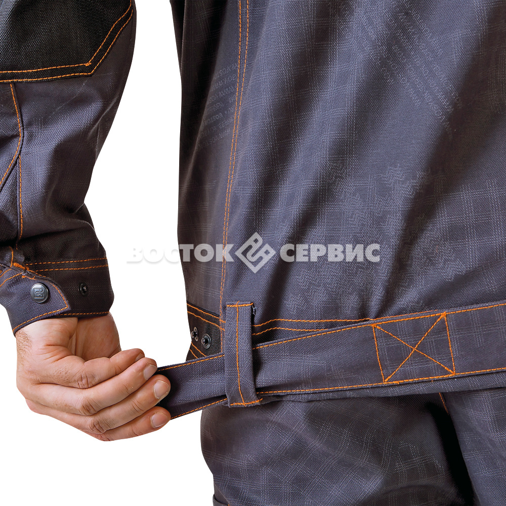 Регулировки по ширине: пояс с кнопками, манжеты с застежкой на кнопках Карманы: накладные объемные с клапанами, большие накладные с вертикальным входом