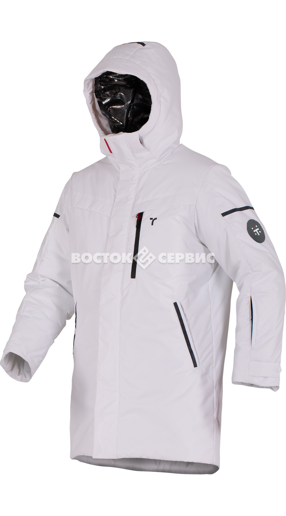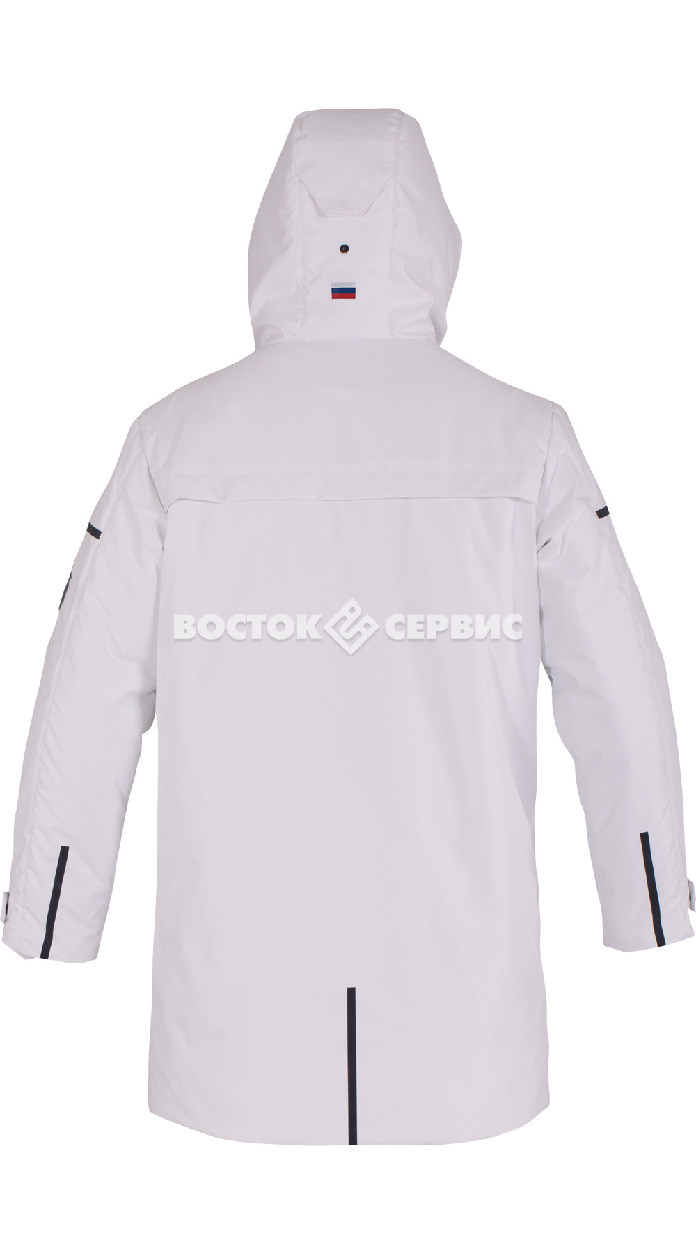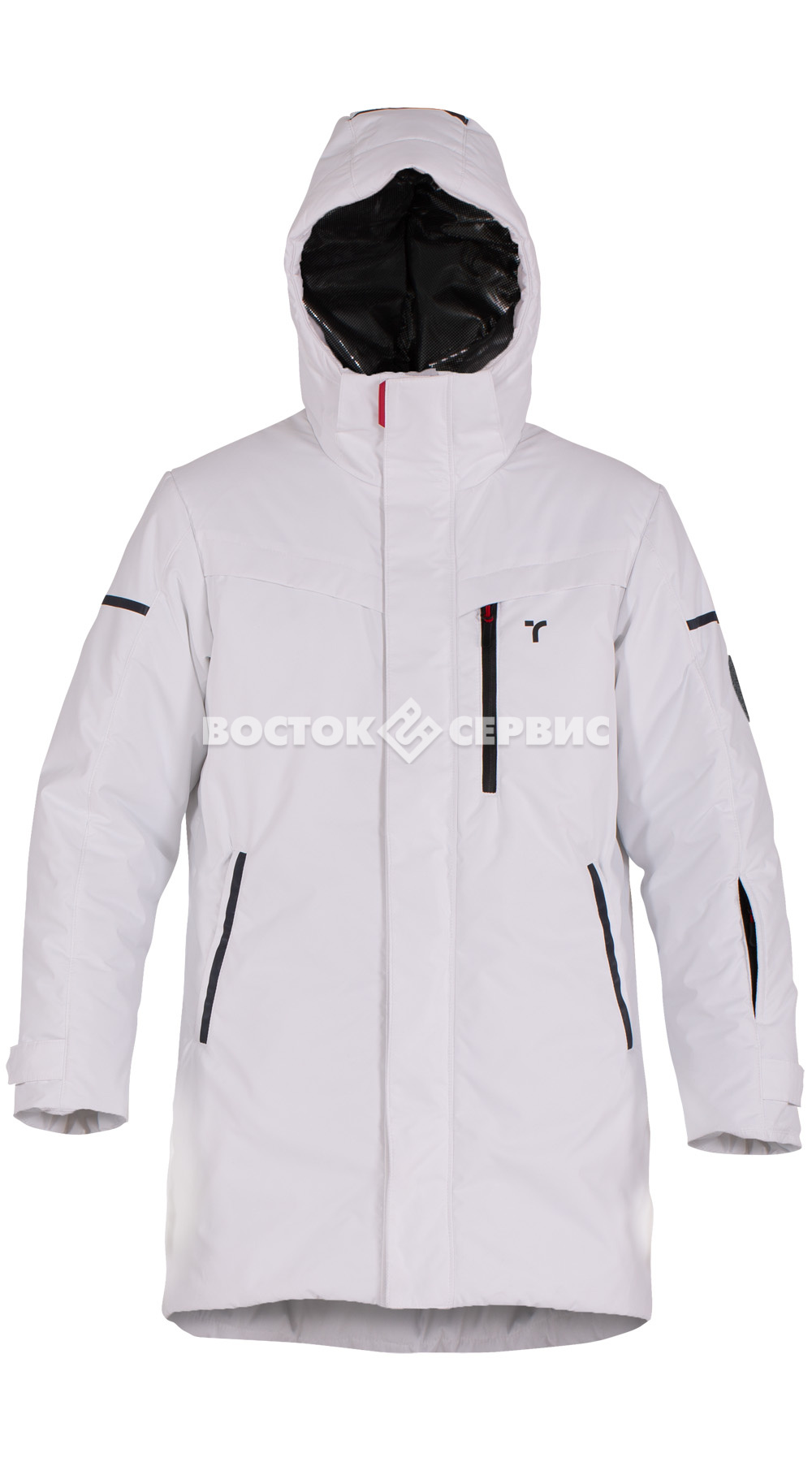 Защитные элементы: ветрозащитная планка на магнитах, трикотажные манжеты.
