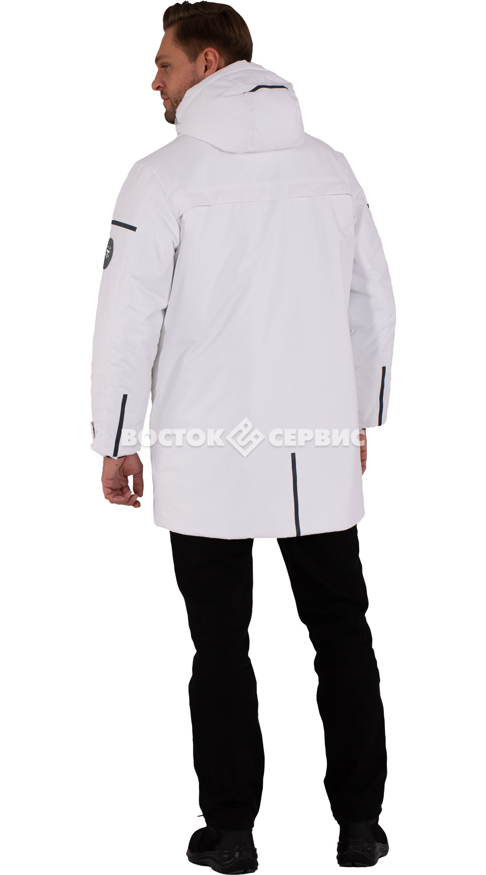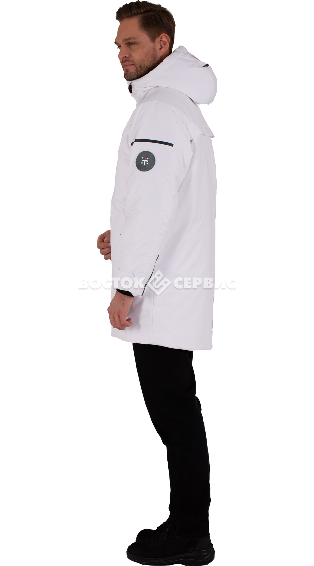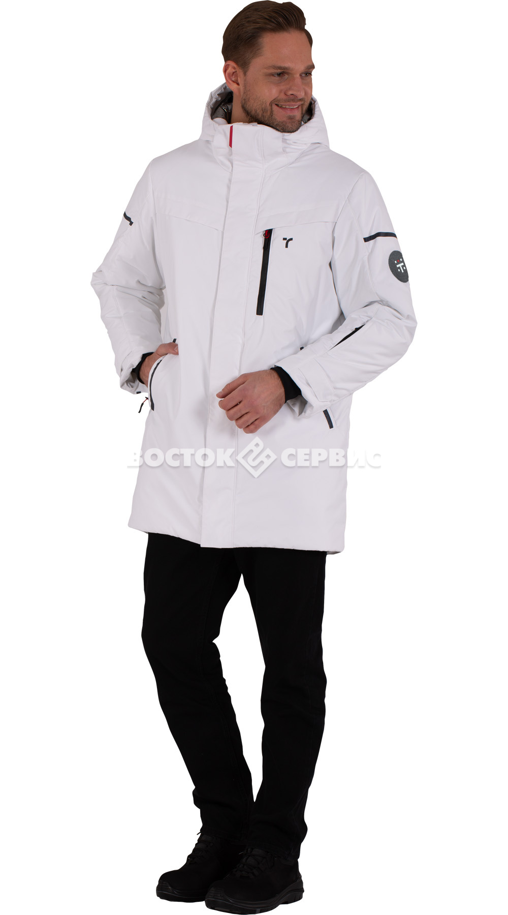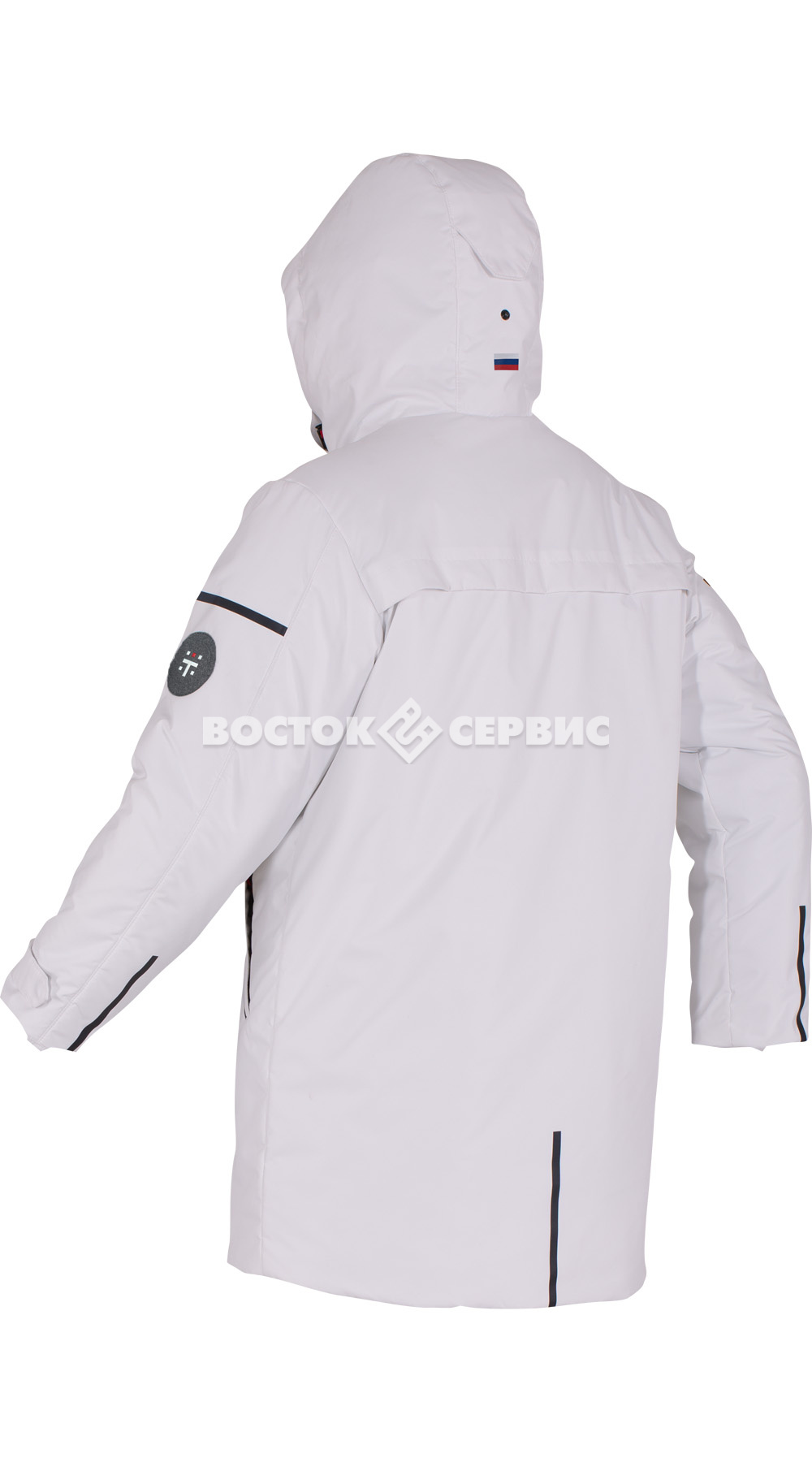 Защитные элементы: ветрозащитная планка на магнитах, трикотажные манжеты.