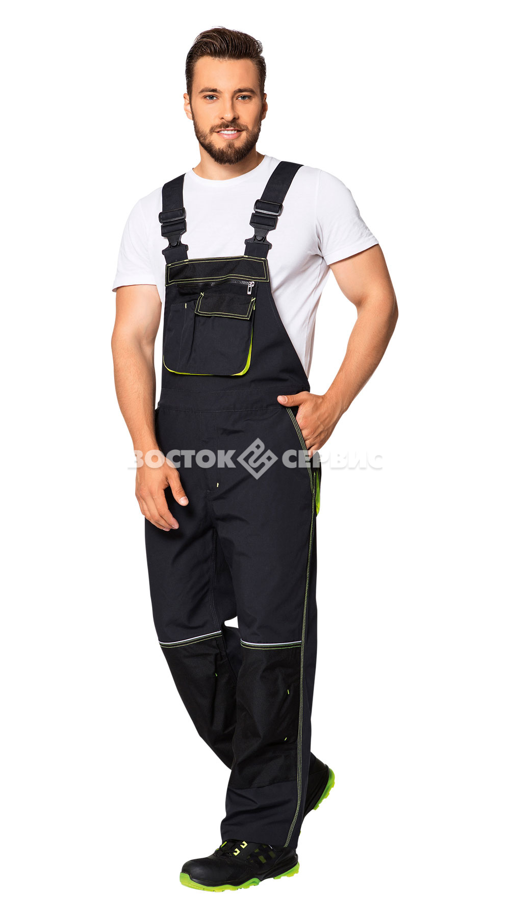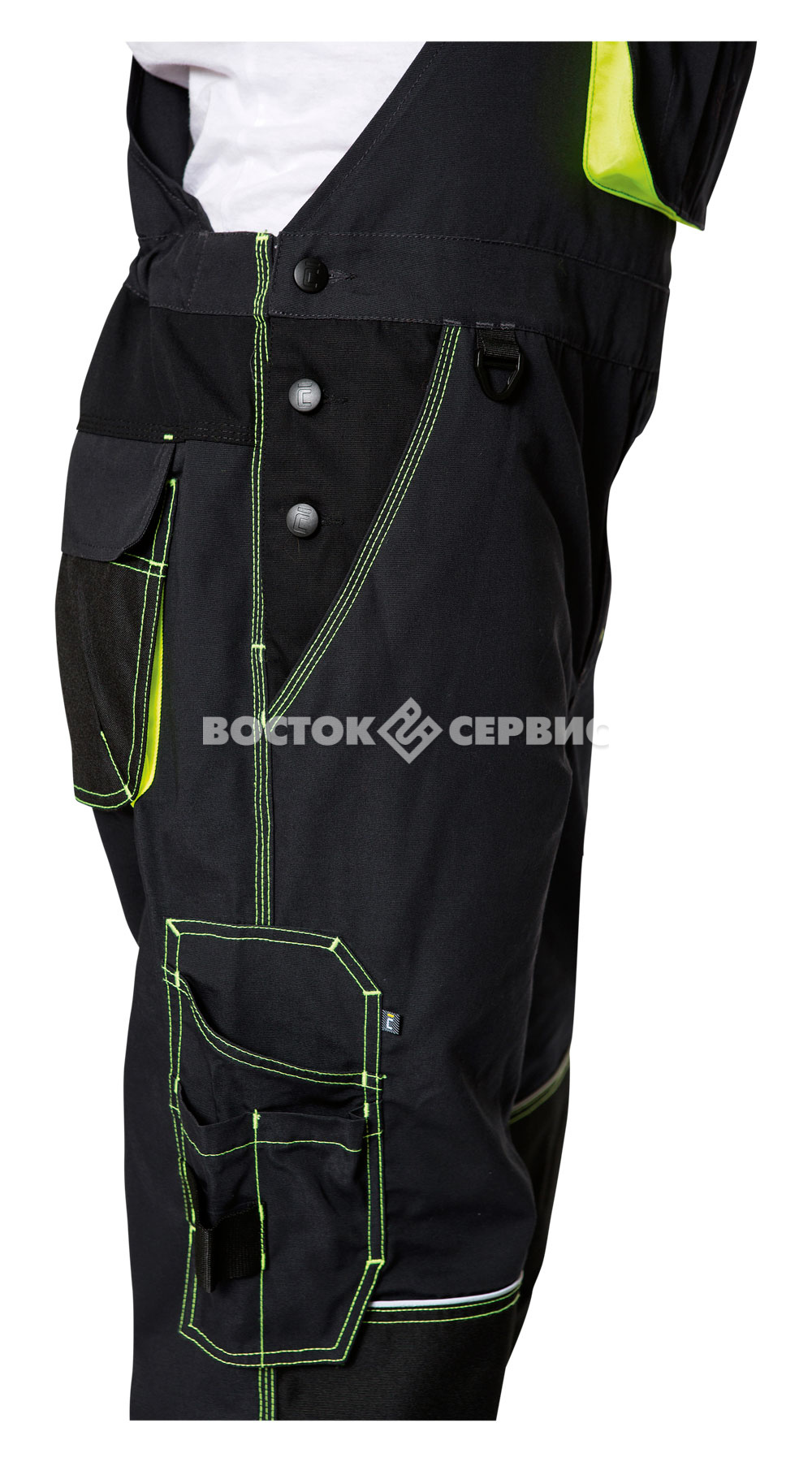 Карманы: на грудке – один на молнии, один с клапаном, два для инструментов; задние накладные; передние; боковой накладной для инстр ументов