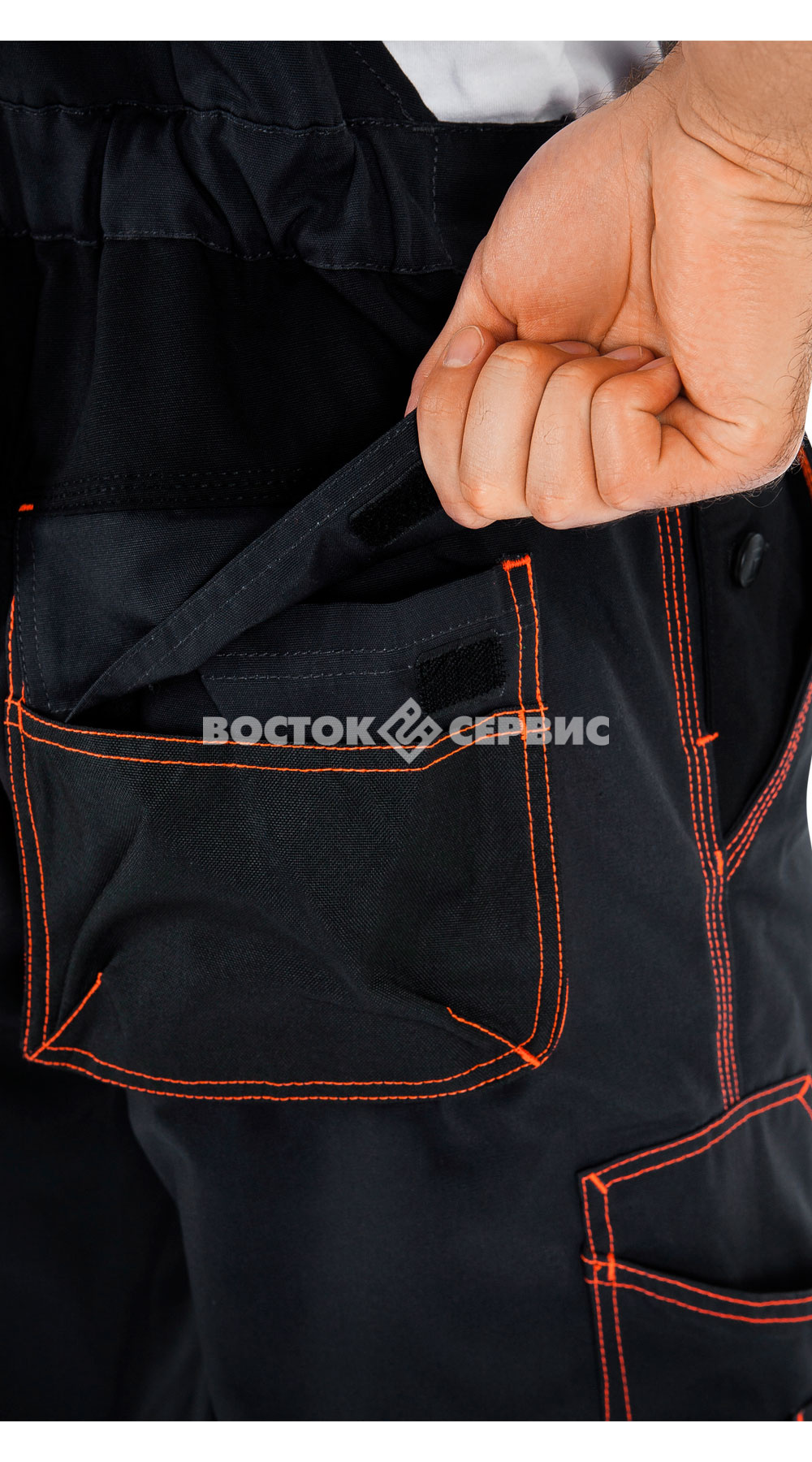 Карманы: на грудке – один на молнии, один с клапаном, два для инструментов; задние накладные; передние; боковой накладной для инстр ументов