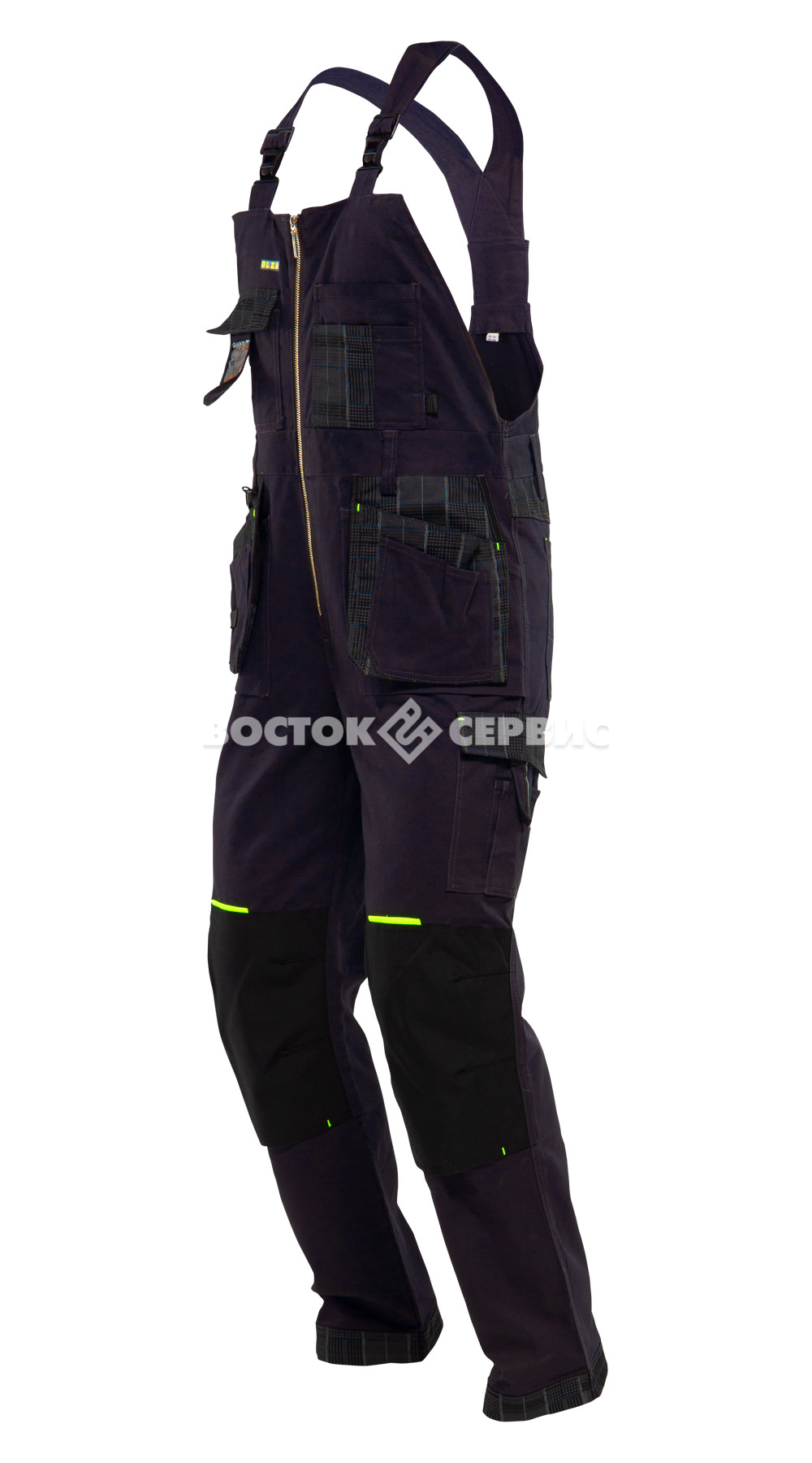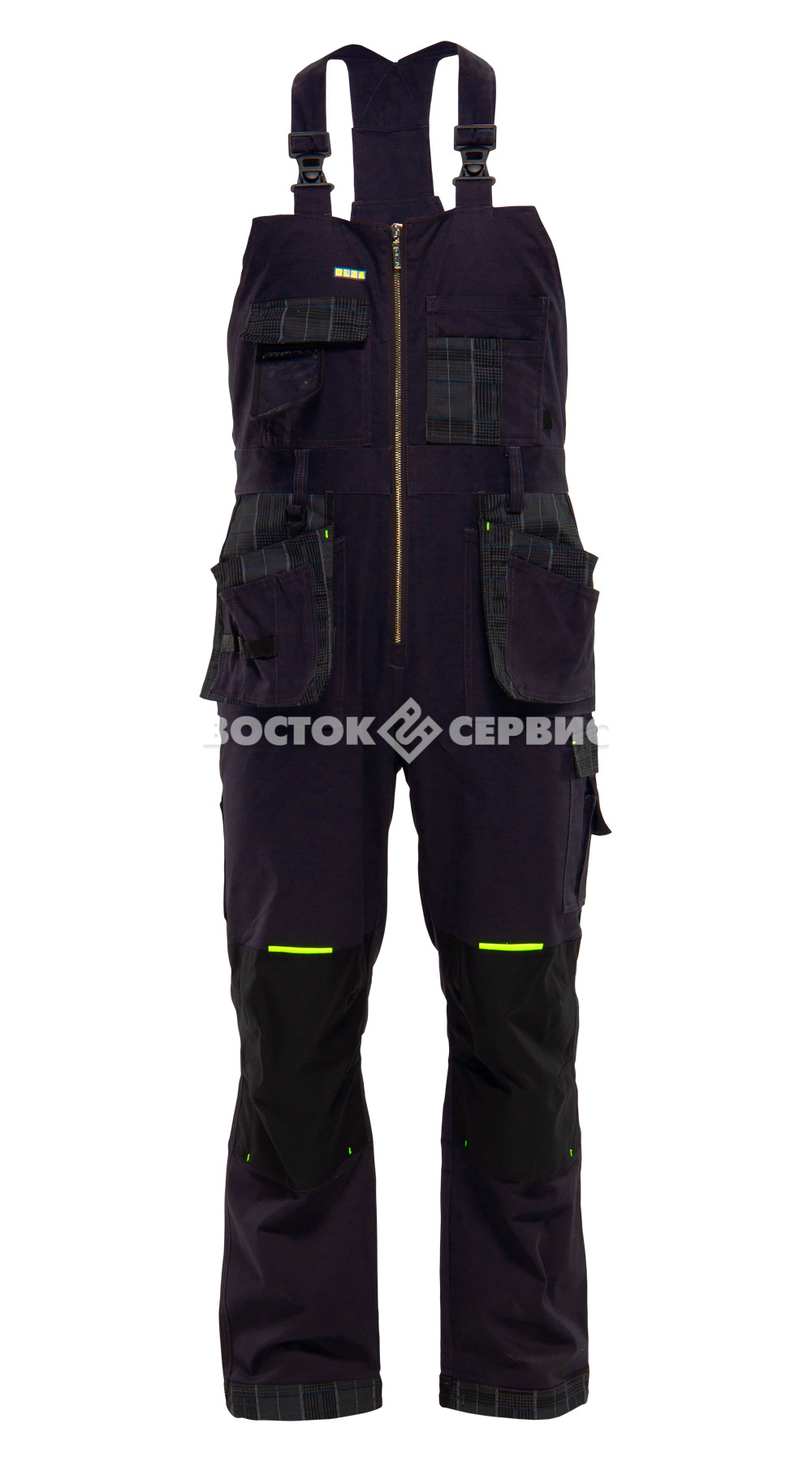 Карманы: нагрудный карман с клапаном на велькро с внутренним отделением для бейда/пропуска; нагрудный 4-х секционный карман с отделениями для карандашей/ручек; передние отлетные 4-х и 2-х секционные для мелких предметов и деталей с петлями для инструментов, могут быть заправлены в накладные карманы; боковой накладной карман с клапаном на текстильной застежке и отделением для рации; 2 задних накладных кармана;