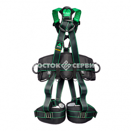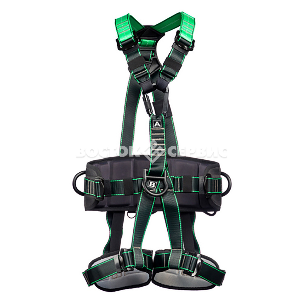 На поясе — специальные петли для крепления инструмента и карабинов соединительно- амортизирующей подсистемы (до 7 кг).