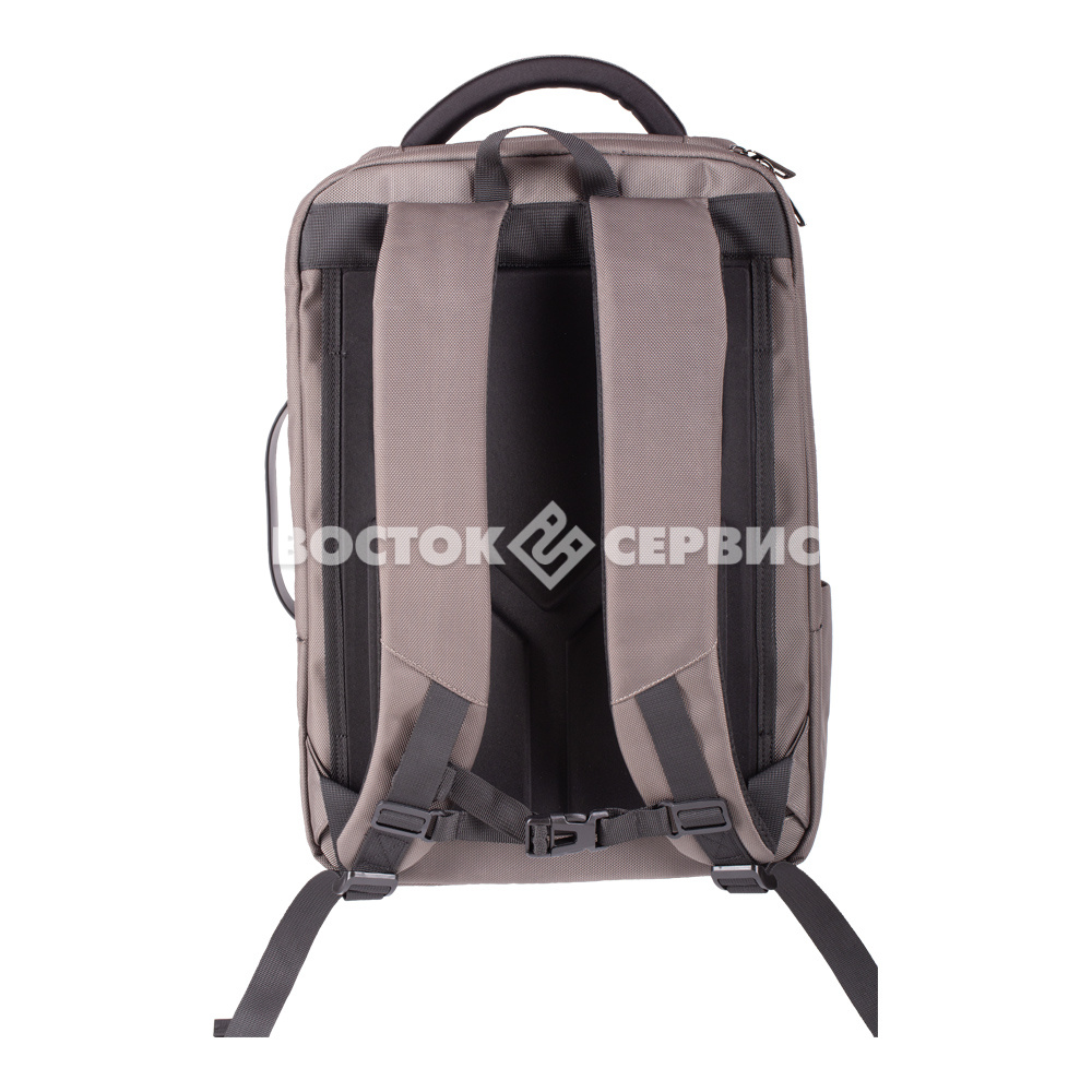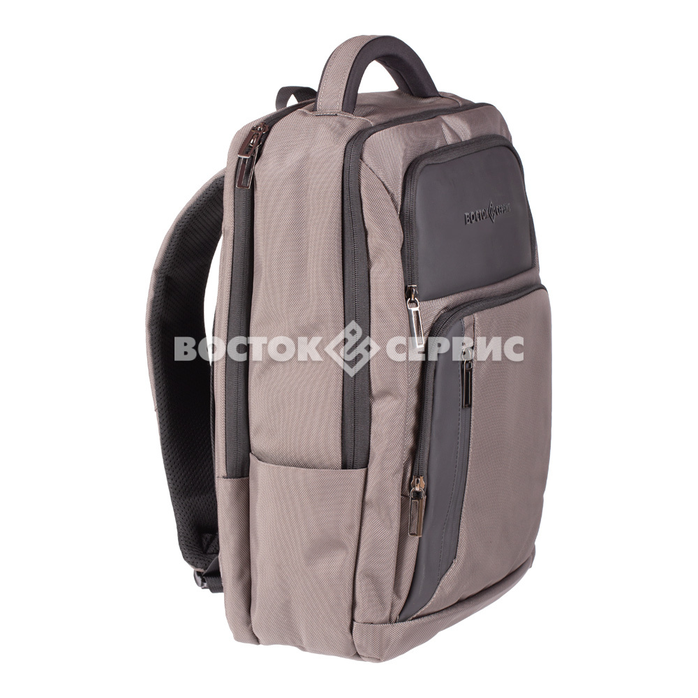 Карманы и отсеки: 3 наружных на молнии, 1 боковой для воды или зонта, большой отсек с сетчатыми карманами для аксессуаров и канцелярии, большой отсек для ноутбукаи документов.