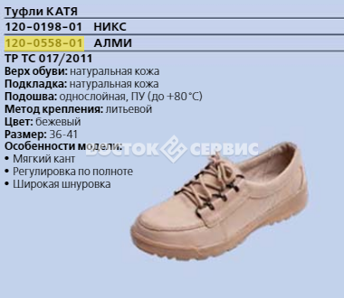| Вид продукта | туфли |