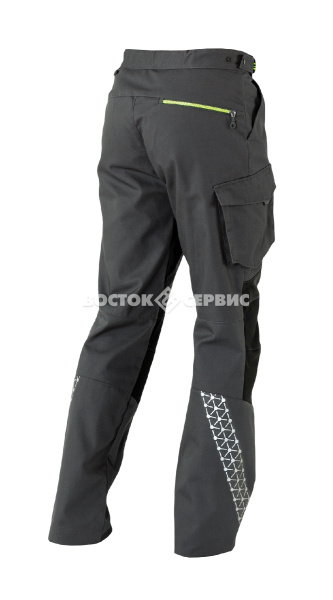 Карманы: наклонные на передних половинках, прорезной на молнии на задней половинке, объемный с клапаном в области бедра