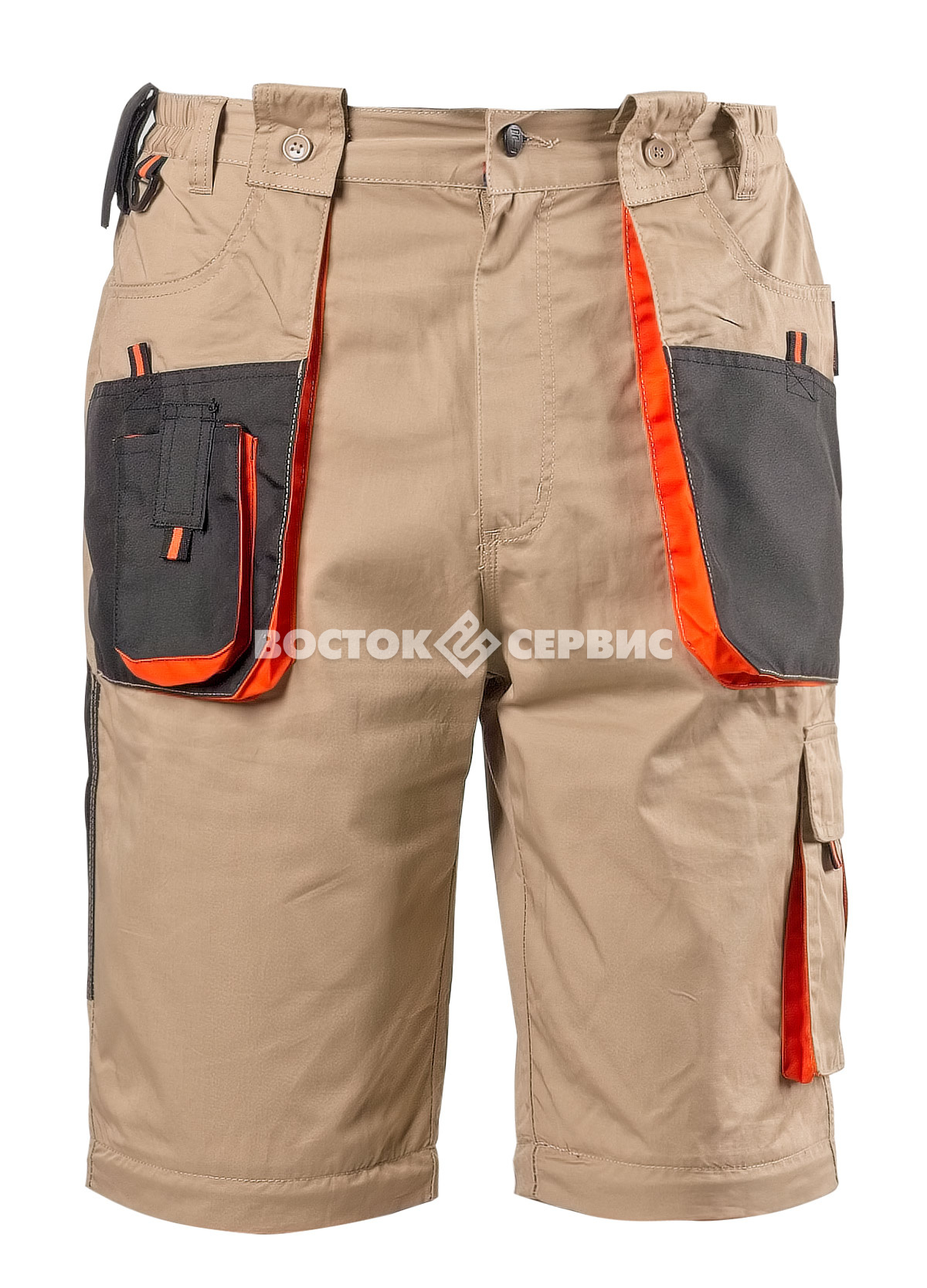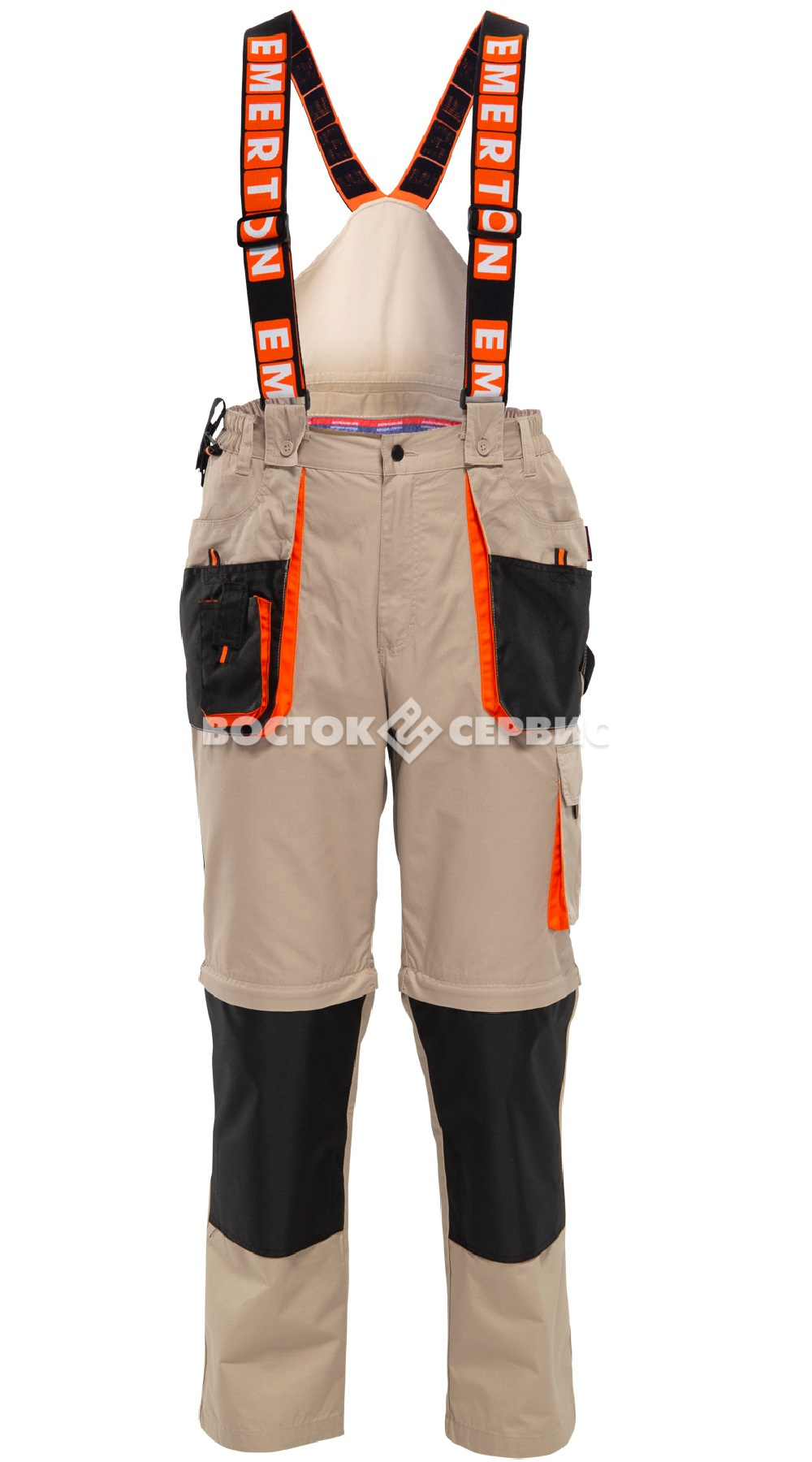 Карманы: верхние двойные объемные, передний накладной карман для рации, боковой усиленный карман дляинструментов, боковой объемный карман с клапаном, петля для инструментов, задние накладные объемные карманы с усилением по низу.