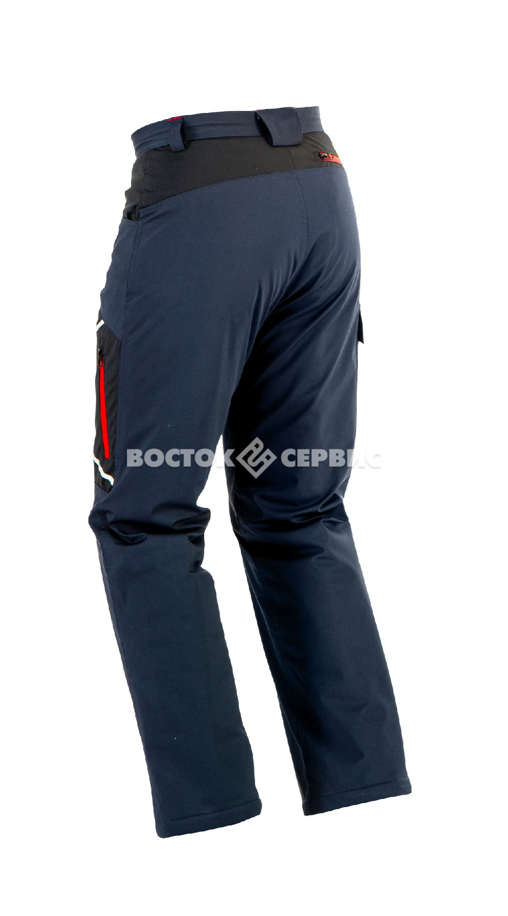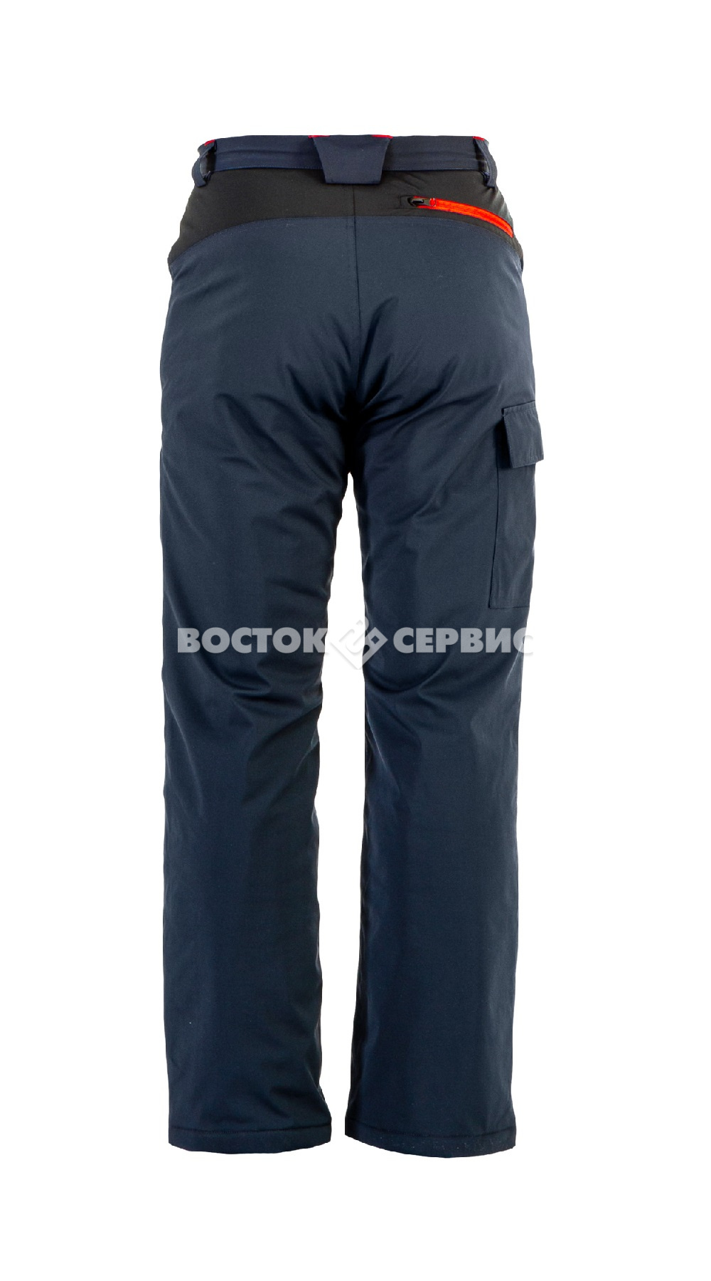 Карманы: верхние передние, накладной с клапаном по боковому шву, прорезной на молнии в средней части левой передней половинки, задний на молнии.