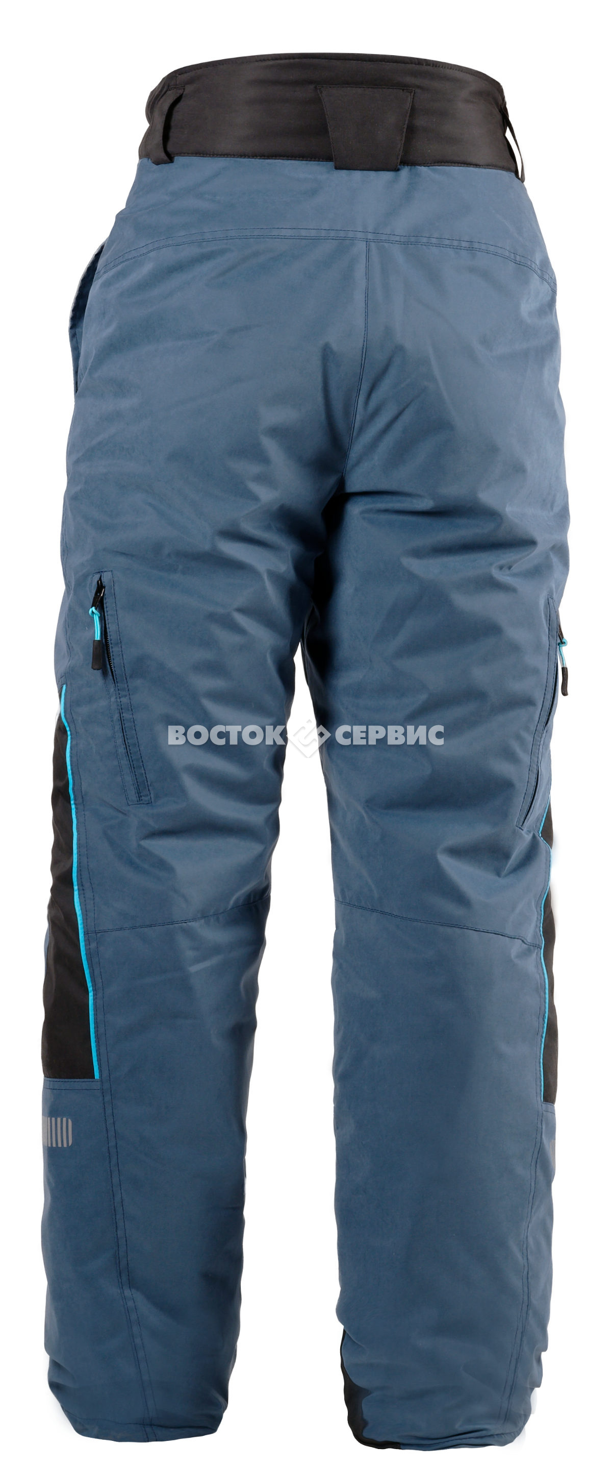 Защитные элементы: внутренние снегозащитные юбки, накладки в области шаговых швов по низу брюк.