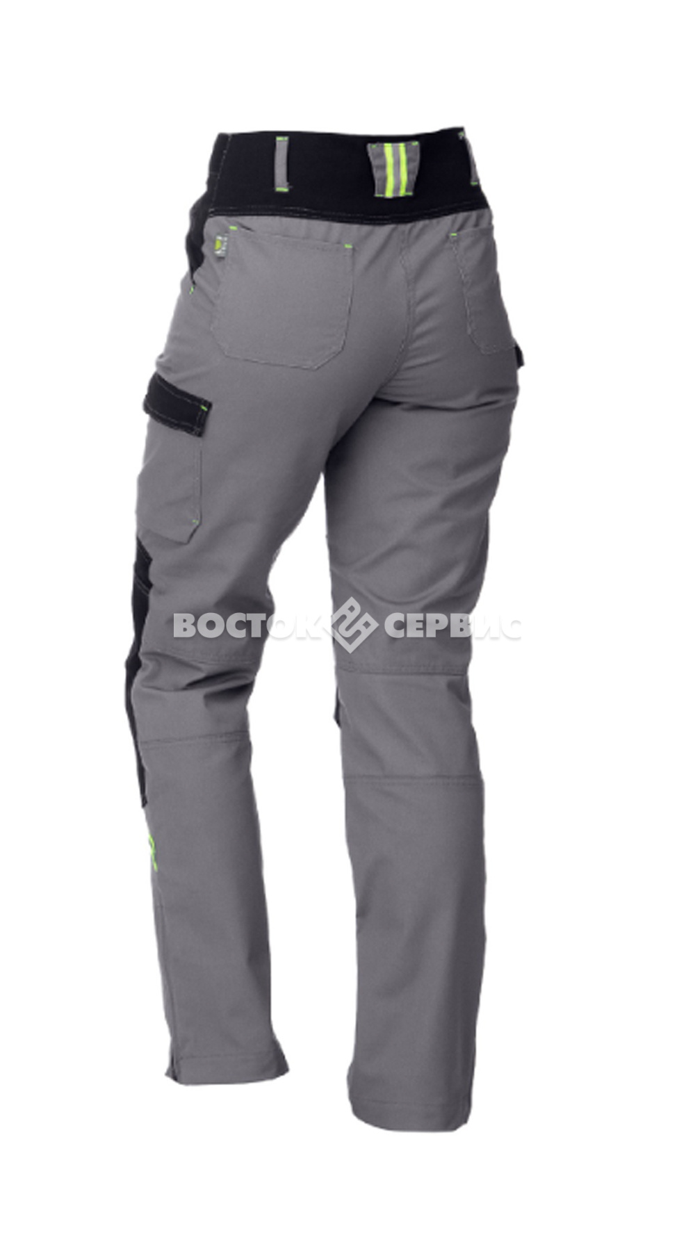 Карманы: на передних и задних половинках, на левом боковом шве Эластичные вставки: кокетка на поясе на задних половинках, вставки над наколенниками