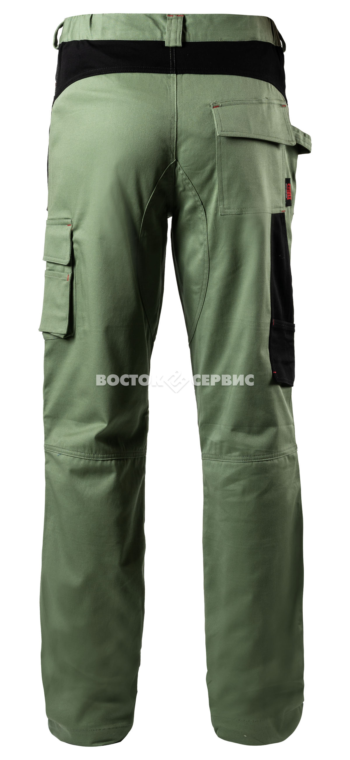 Карманы: боковые, передние накладные, задний накладной, карман для инструментов на боковом шве.