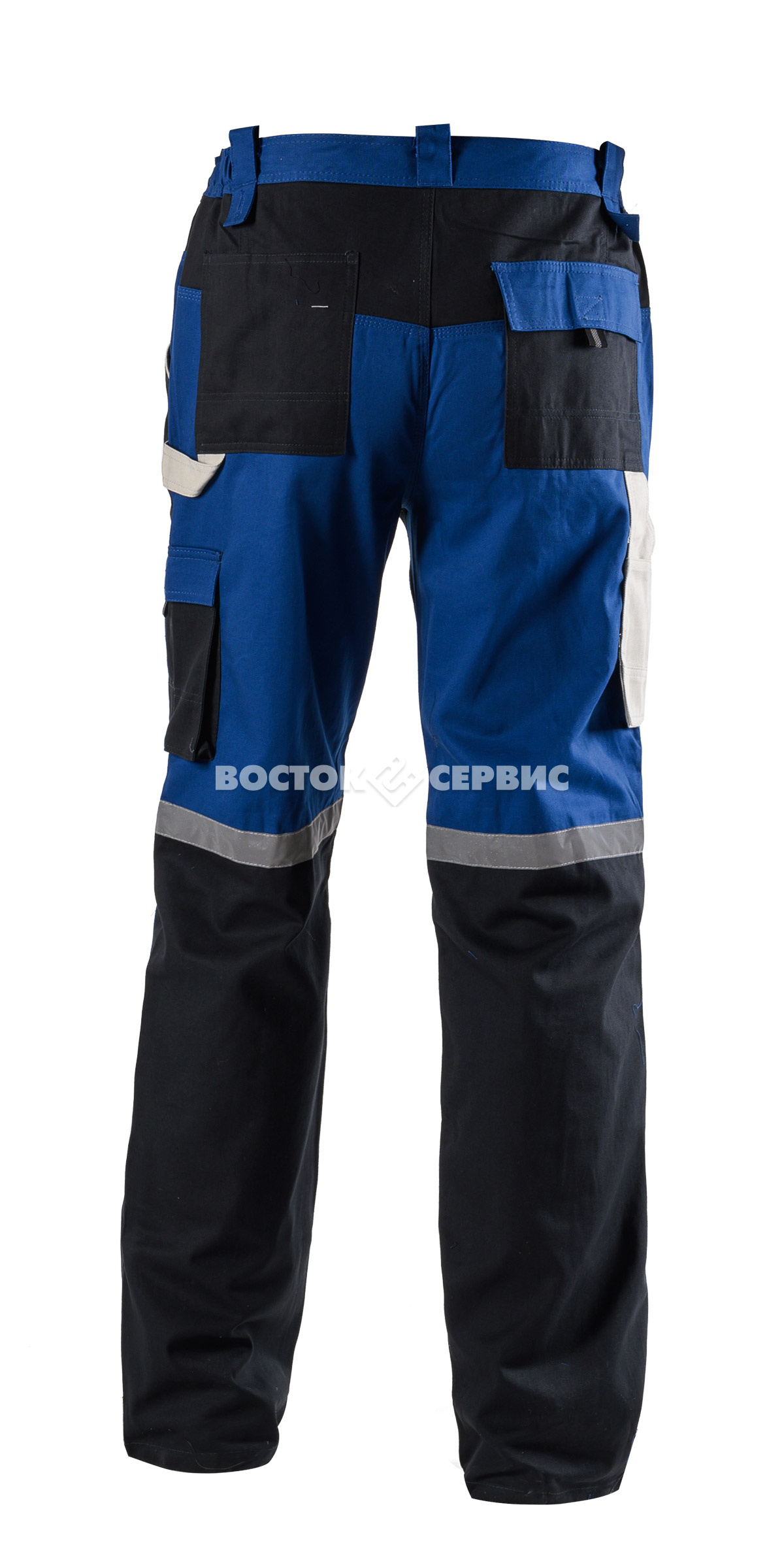 Карманы: передние с наклонным входом, боковой объемный с клапаном на текстильной застежке, петля и боковой карман для инструмента, задние накладные, карманы для амортизационных вкладышей на наколенниках с верхним наружным входом с текстильной застежкой;