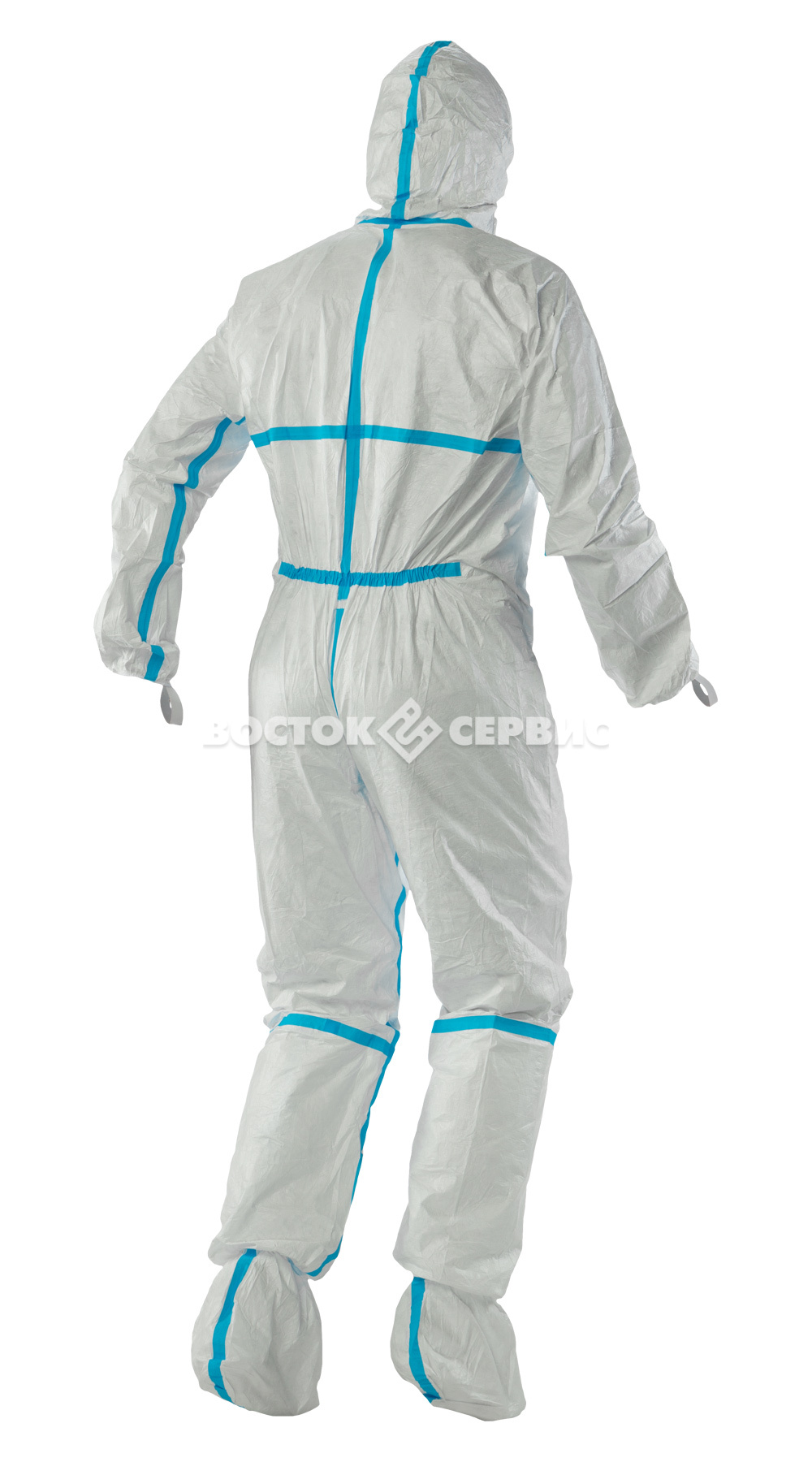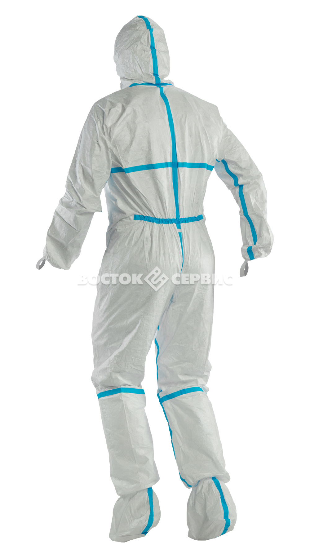 Использование: для защиты от проникновения пыли, химических, механических частиц, непроницаемые для аэрозолей жидких химических веще ств (неорганические кислоты и щелочи до 40 %) (тип 4), от твердых аэрозольных частиц химических веществ (тип 5), с ограниченной защитой от жидких химических веществ (тип 6) с антистатическим эффектом.