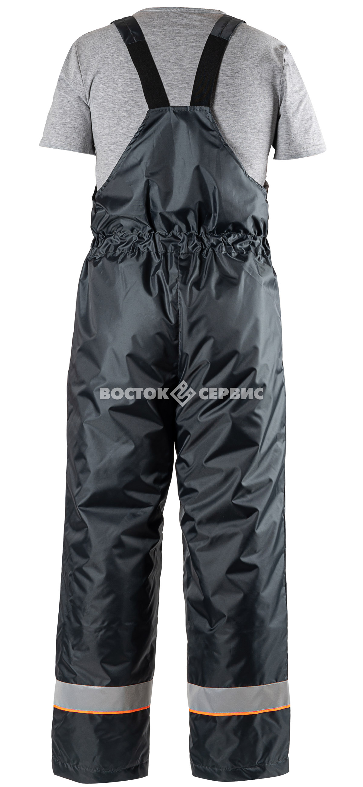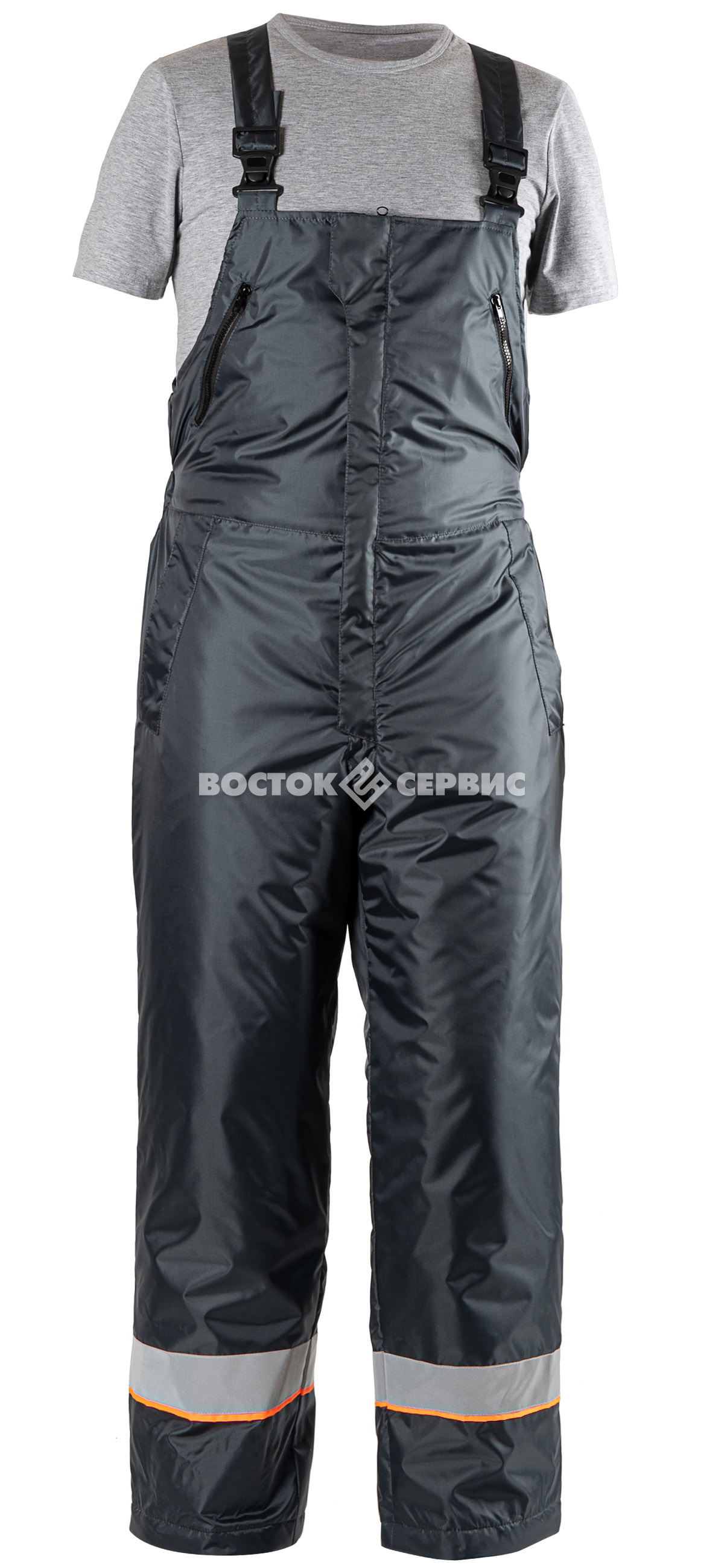 Карманы: верхние на молнии, нижние на молнии с клапанами; полукомбинезон - нагрудный прорезной на молнии.