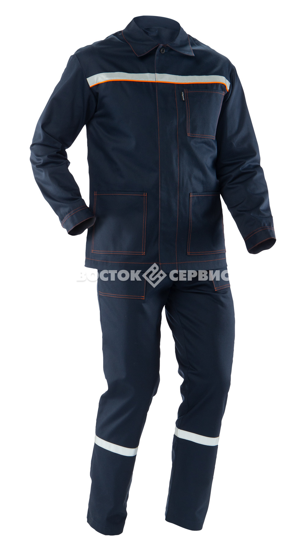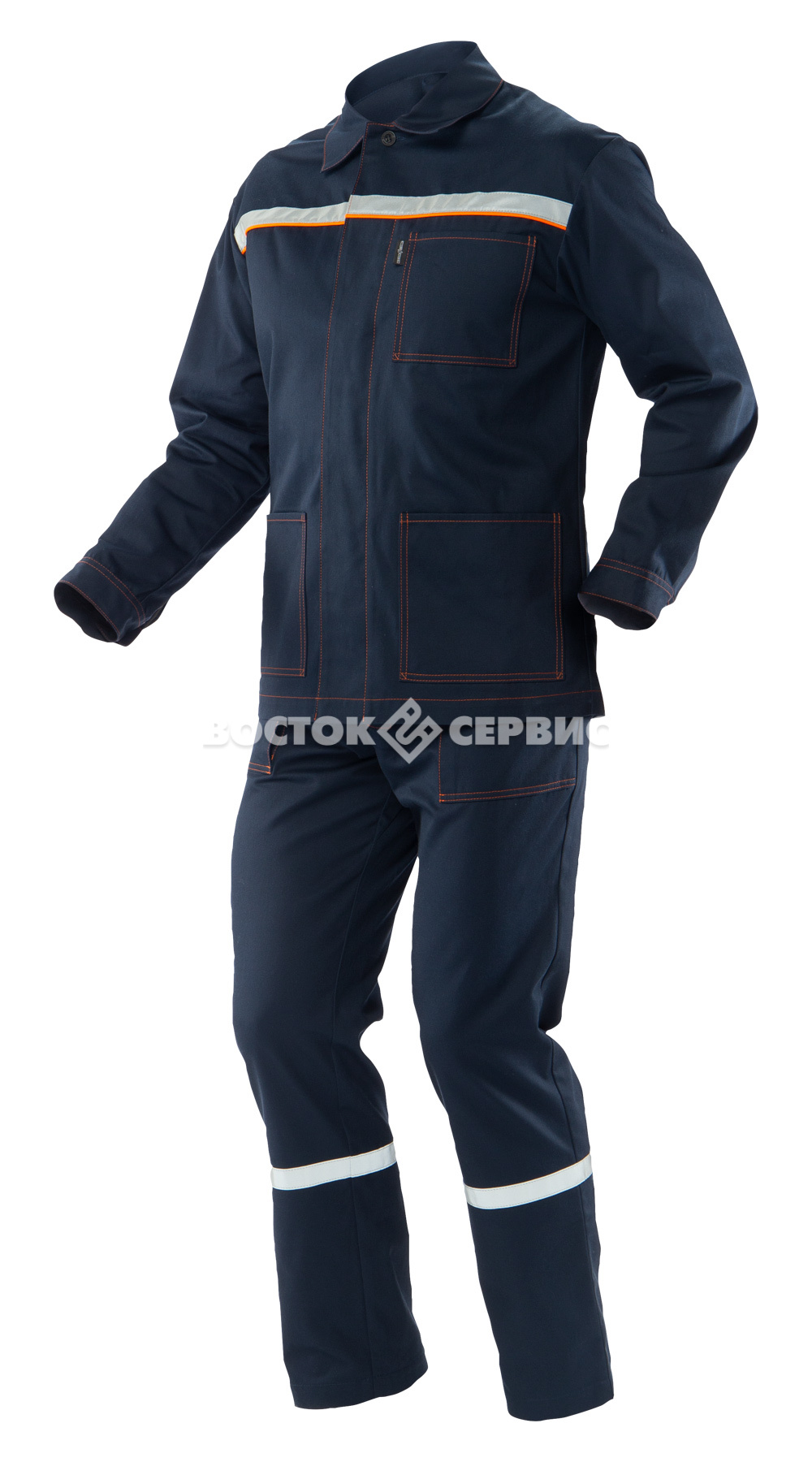 Световозвращающие полосы на куртке и брюках.