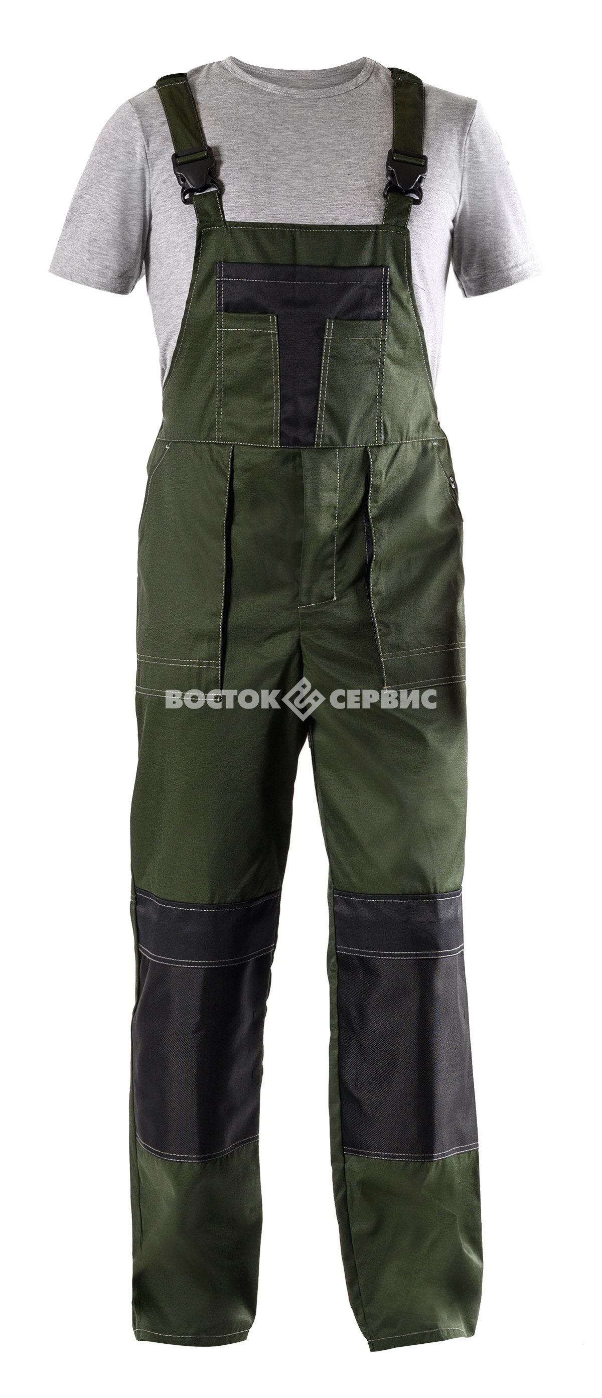 рельефных швах; на полукомбинезоне – накладные и боковые