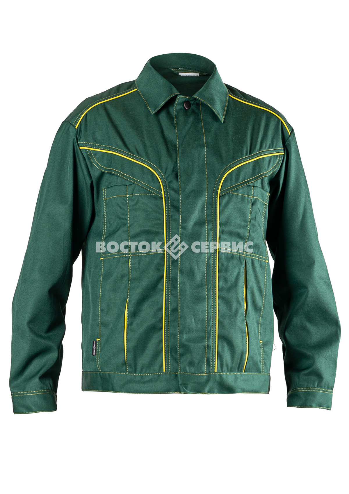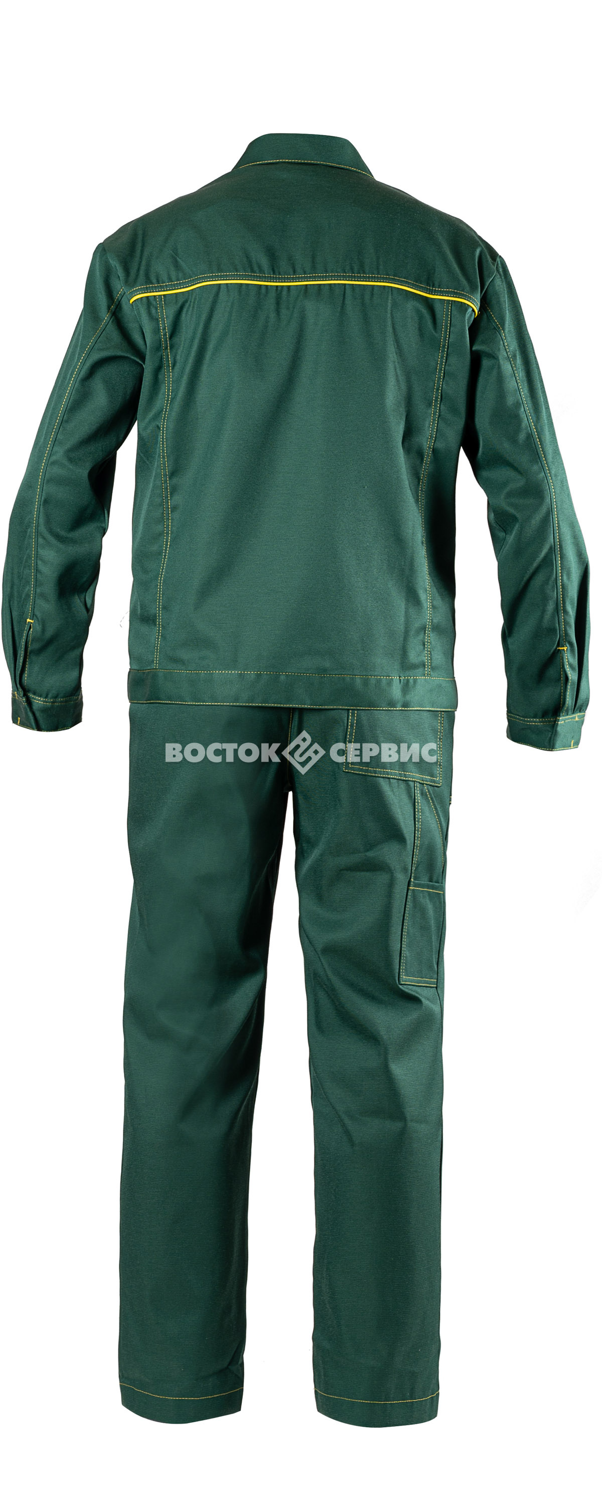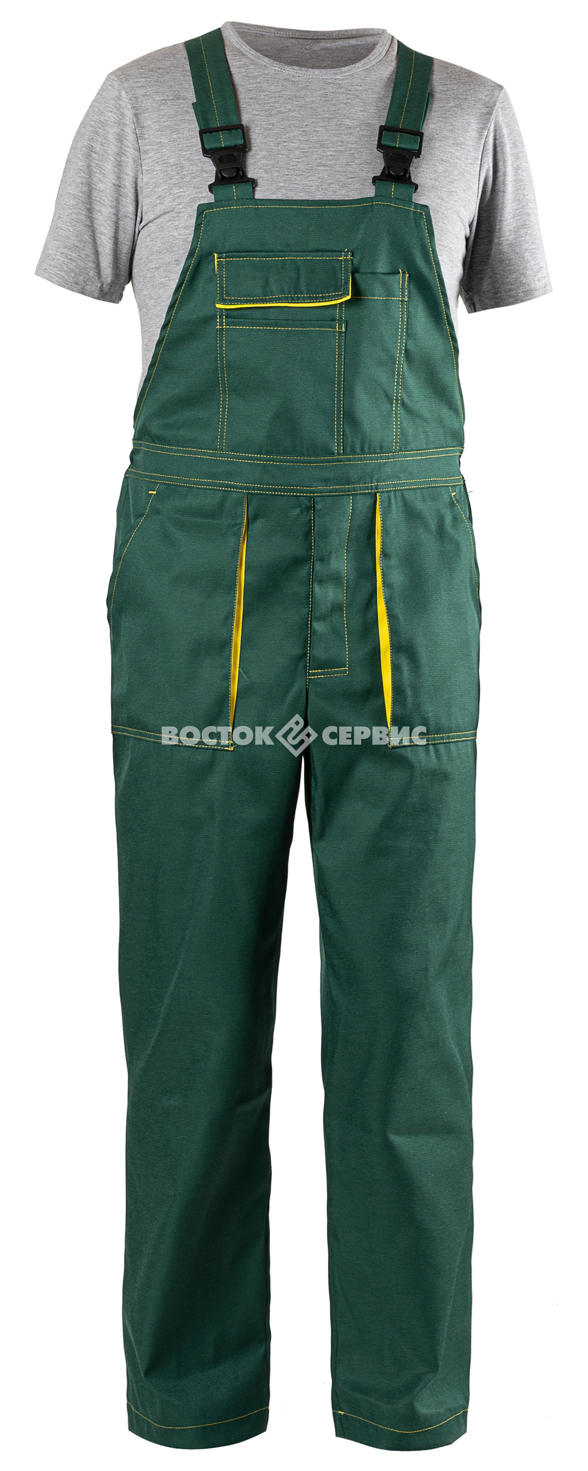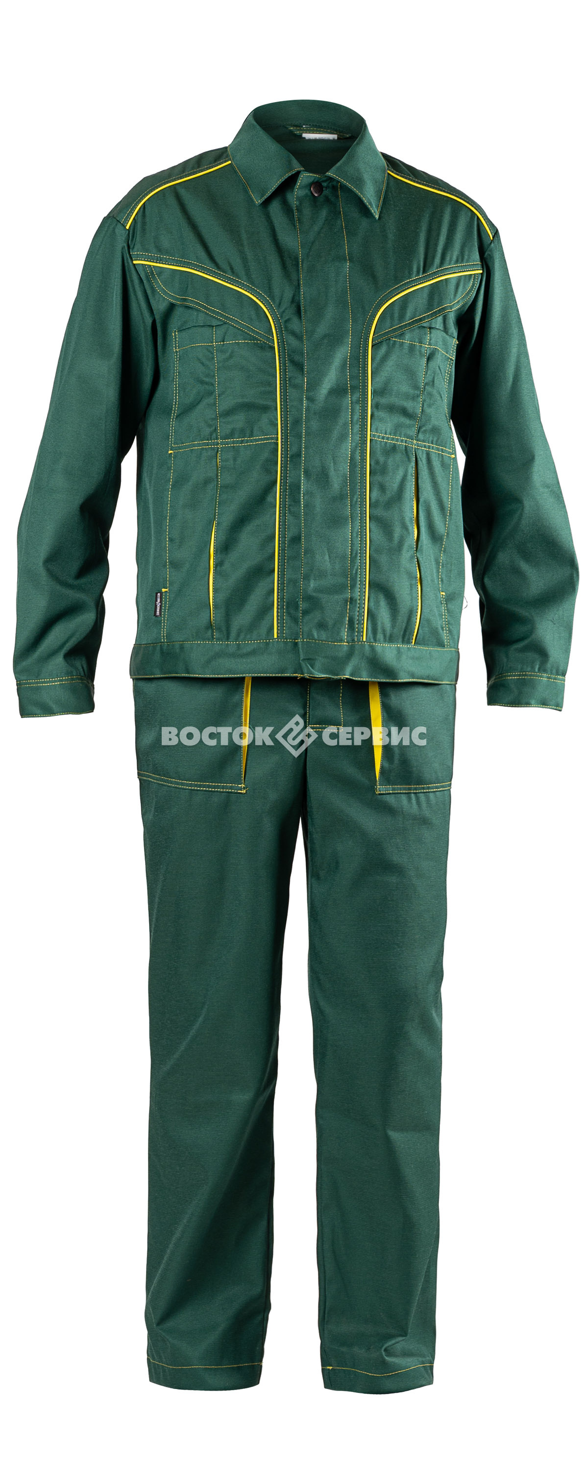 Карманы: на куртке - накладные полуобъемные с клапанами; на полукомбинезоне - нагрудный, боковые полуобъемные, задние для инструмент ов.