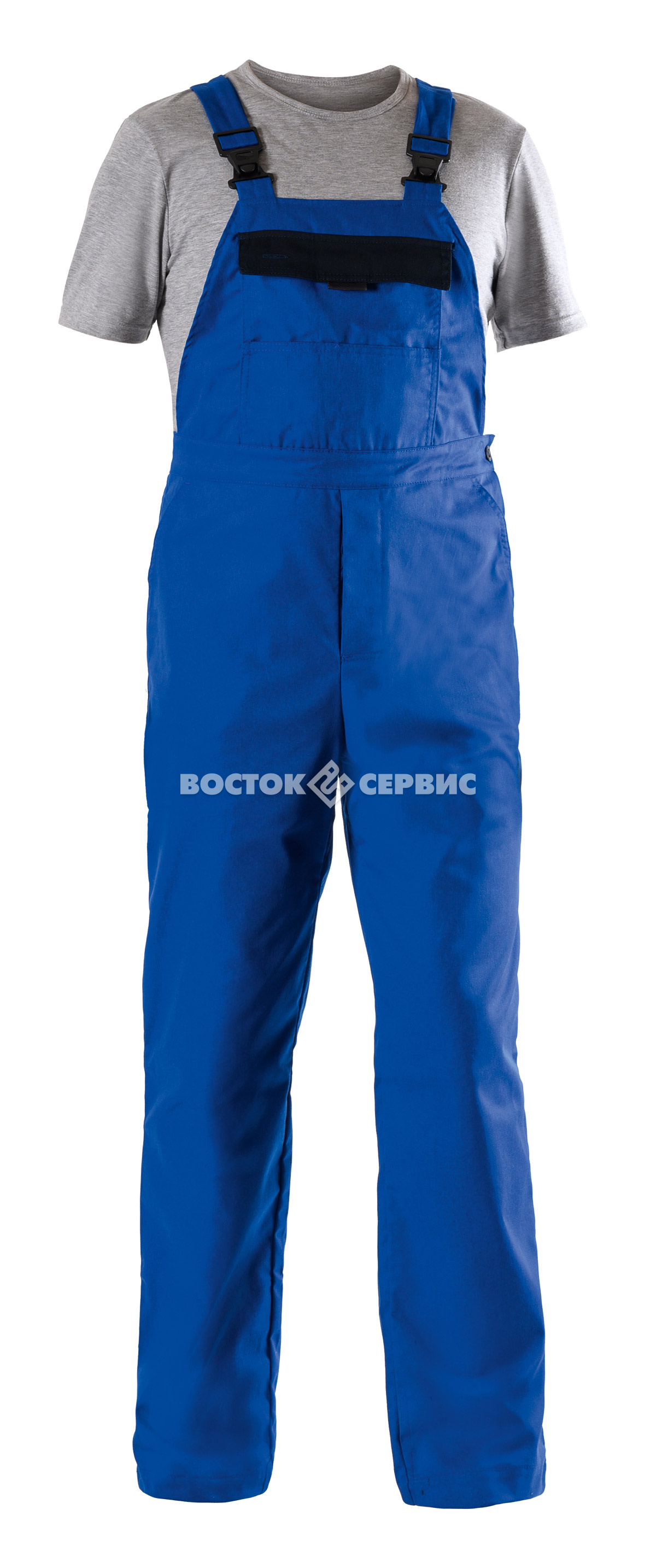 Карманы полукомбинезона: боковые с наклонным входом, задние фигурные для инструментов, нагрудный двойной накладной карман с клапаном и текстильной застежкой.