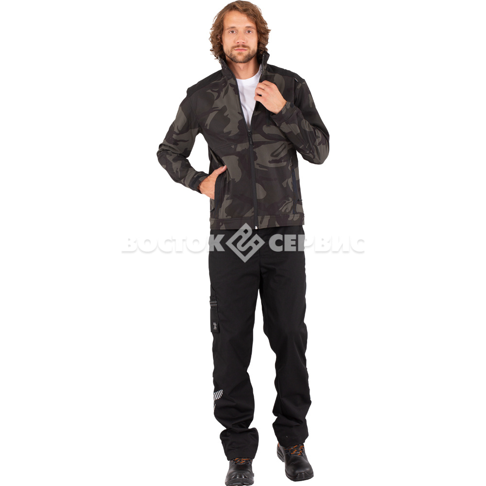 Материал: трехслойный софтшелл (первый слой - плащевая ткань, второй - мембрана, третий - флис).