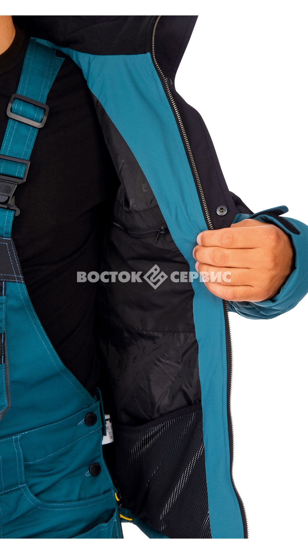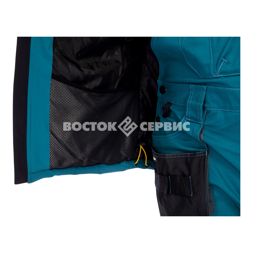 Карманы: нагрудный, боковые, на рукаве – на молнии, внутренний на полочке и на подборте – на молнии, по низу куртки – накладные для документов большого формата.
