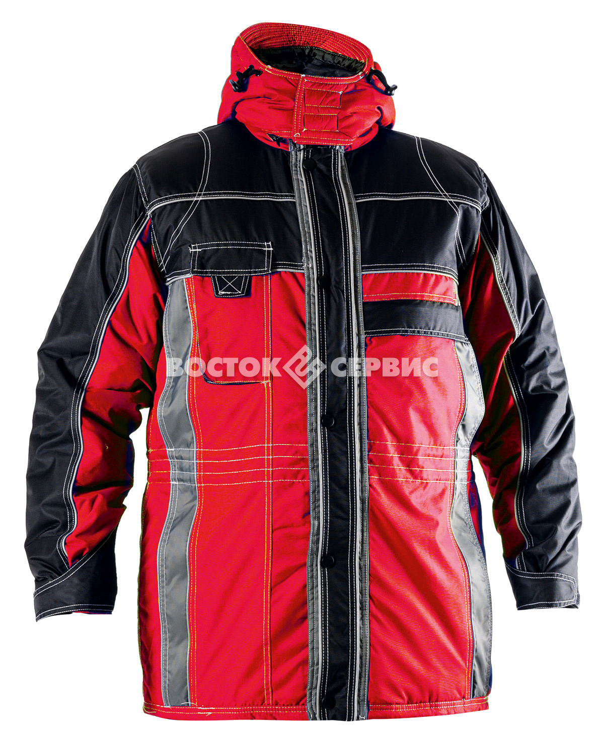 Регулировки по ширине: по линии талии, низу куртки, манжеты с эластичной тесьмой с хлястиком на текстильной застежке.