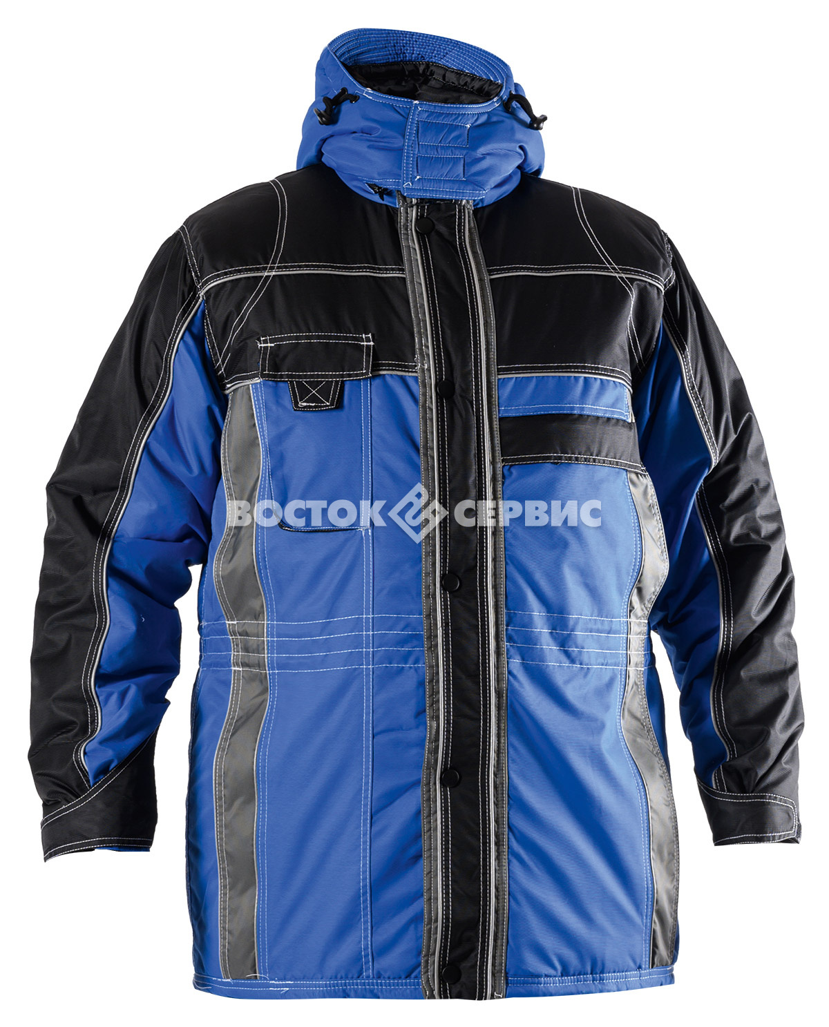 Регулировки по ширине: по линии талии, низу куртки,манжеты с эластичной тесьмой с хлястиком на текстильной застежке