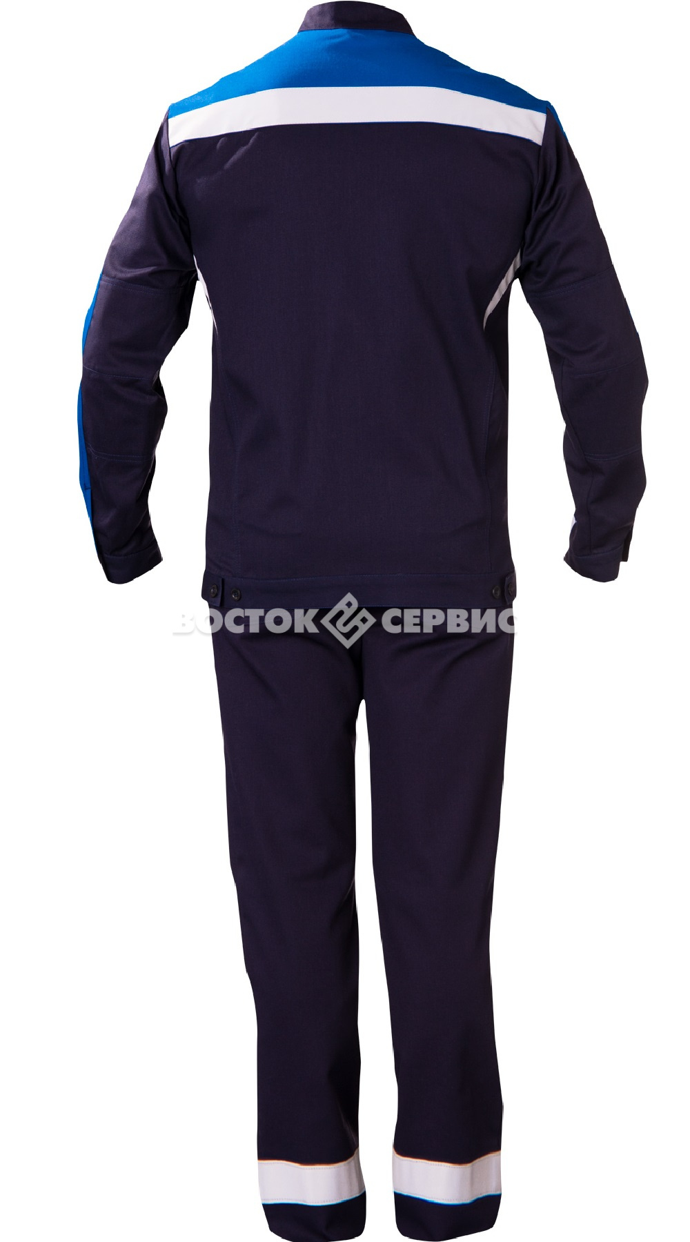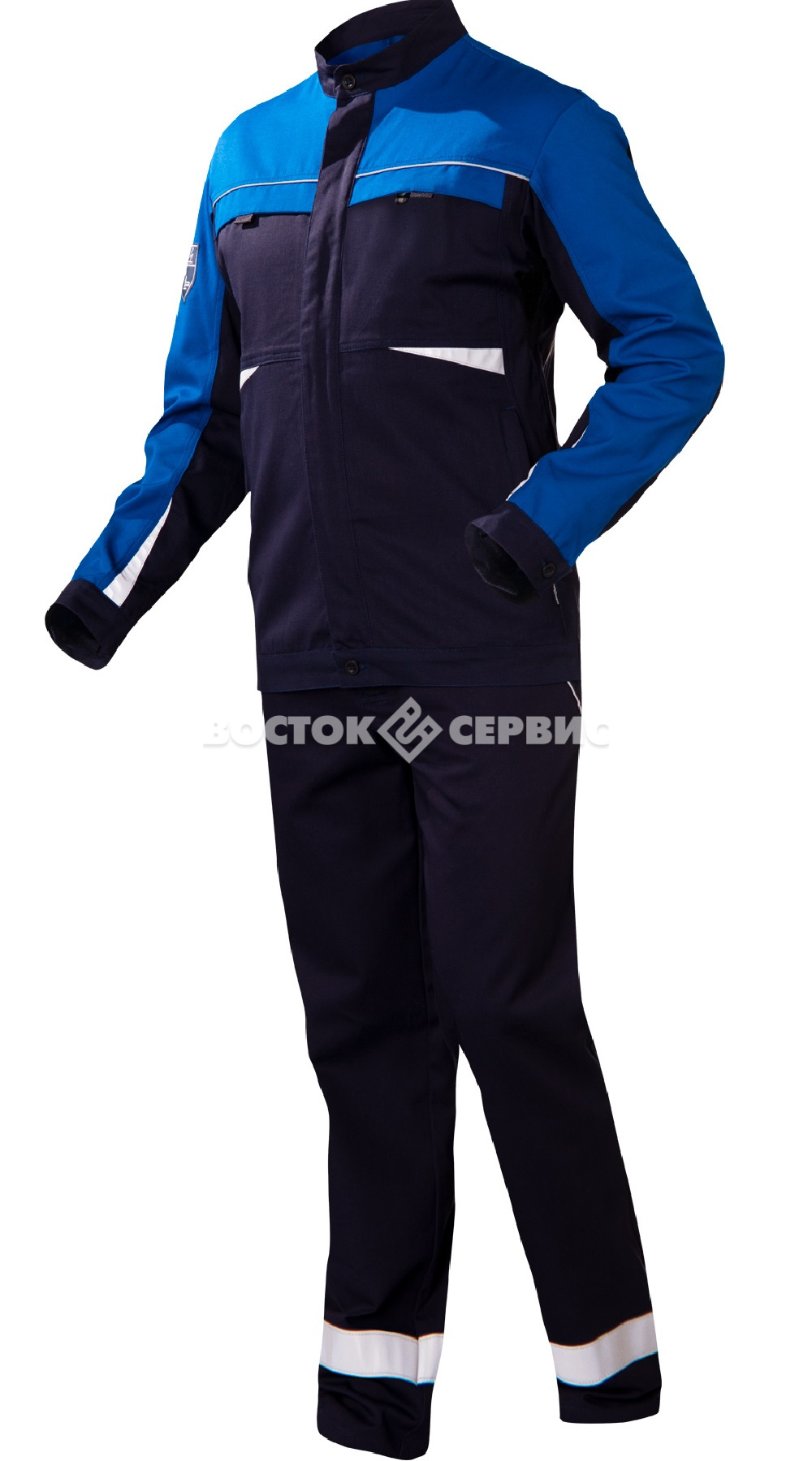 Регулировки по ширине: хлястики на поясе куртки и манжеты на пуговицах; Карманы: нагрудные с клапанами с текстильной застежкой, съемный пластиковый для пропуска, нижние наклонные в шве на молнии; Вентиляционные отверстия: сетка в области пройм