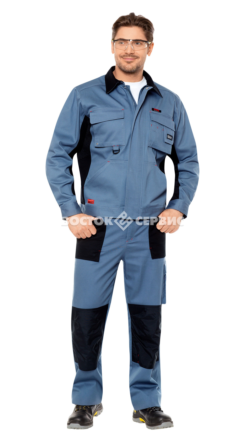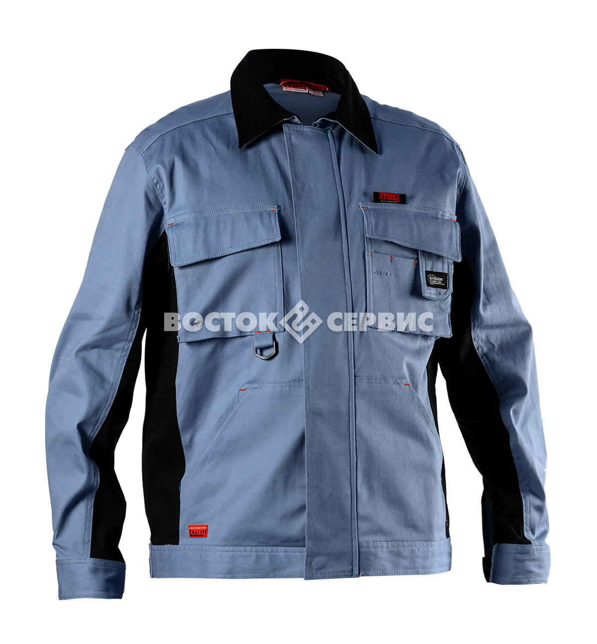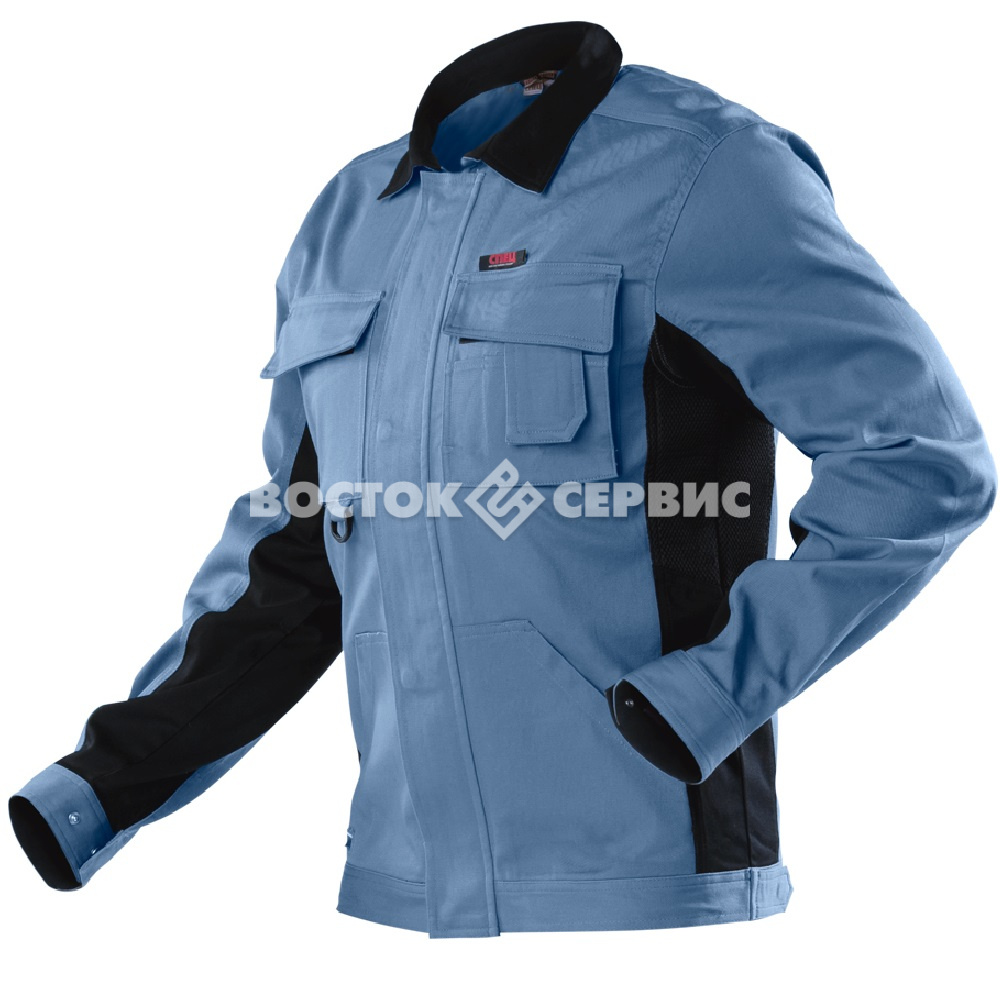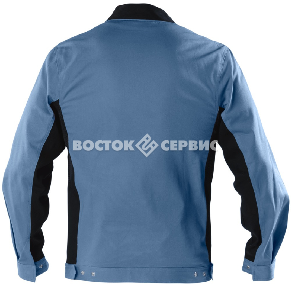 Застегивается на молнию, закрытую планкой на кнопках. Объемные нагрудные карманы с клапанами. Под проймой вставка из пористого полотна для лучшей вентиляции. По низу расположены хлястики для регулировки ширины модели.