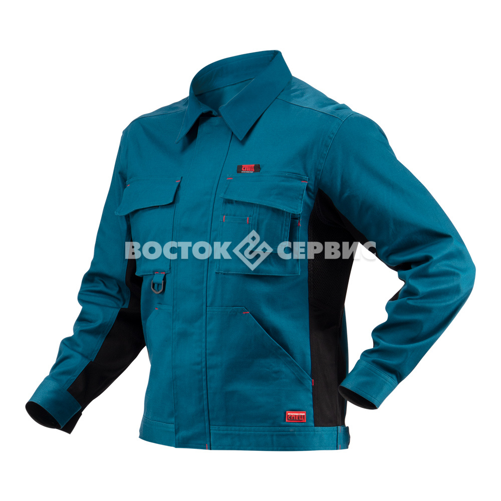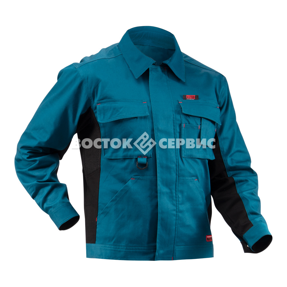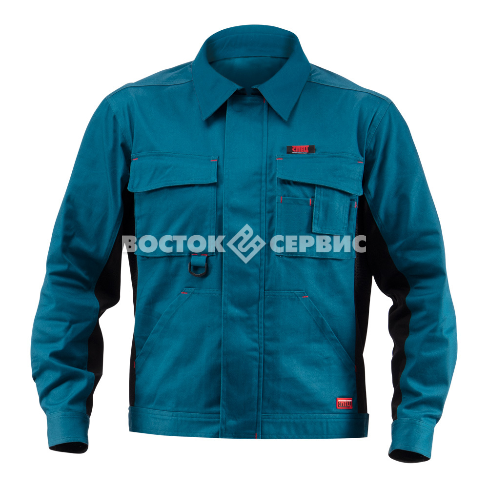 Объемные нагрудные карманы с клапанами. Под проймой вставка из пористого полотна для обеспечения оптимального воздухообмена и комфорта. По низу куртки расположены хлястики на кнопках для регулировки ширины.