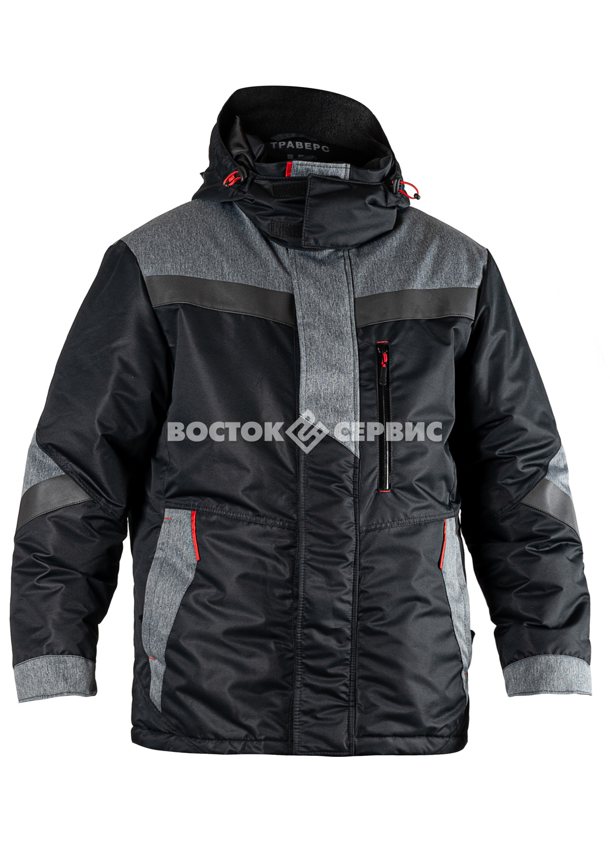 Карманы: верхний прорезной на молнии, нижние боковые на молнии, по борту прорезной на молнии для планшета, внутренние – на молнии, накладной для смартфона, нижние для документов больших форматов с застежкой на кнопке Защитные элементы: ветрозащитная планка, трикотажные манжеты, внутренний воротник из флиса