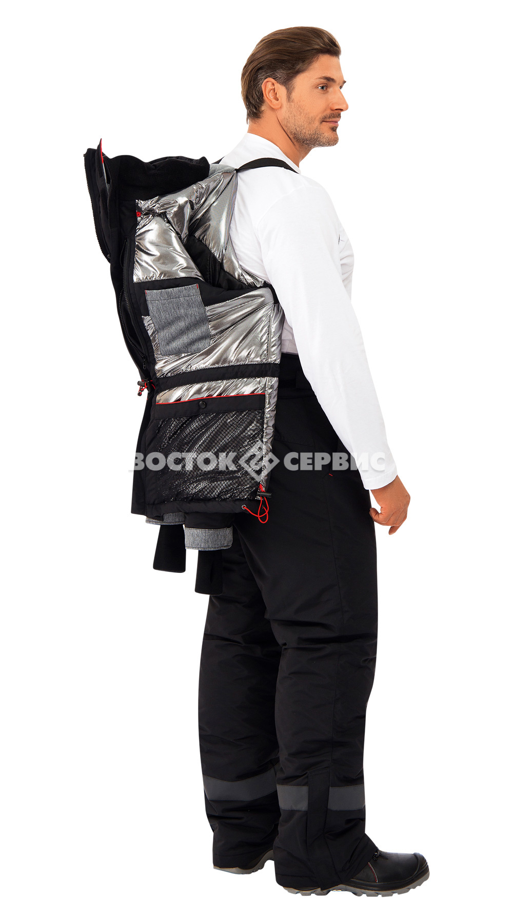 Световозвращающие элементы: черные ленты по полочкам, спинке, рукавам.