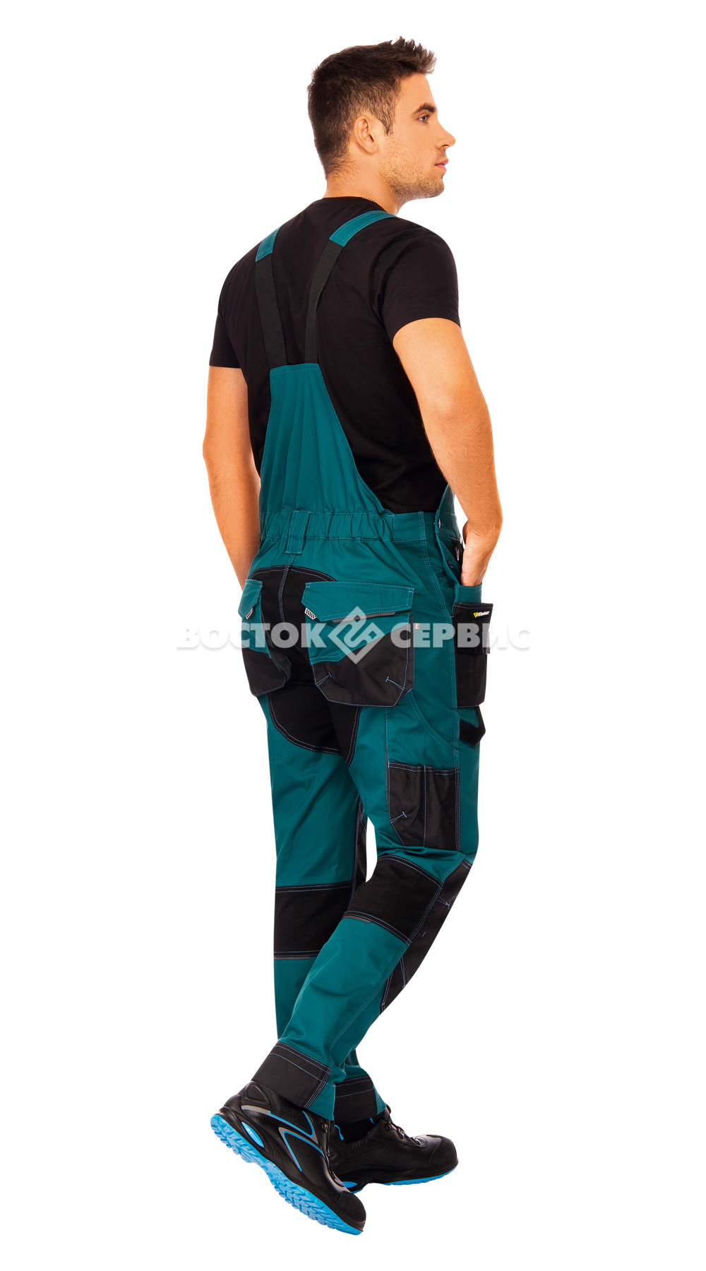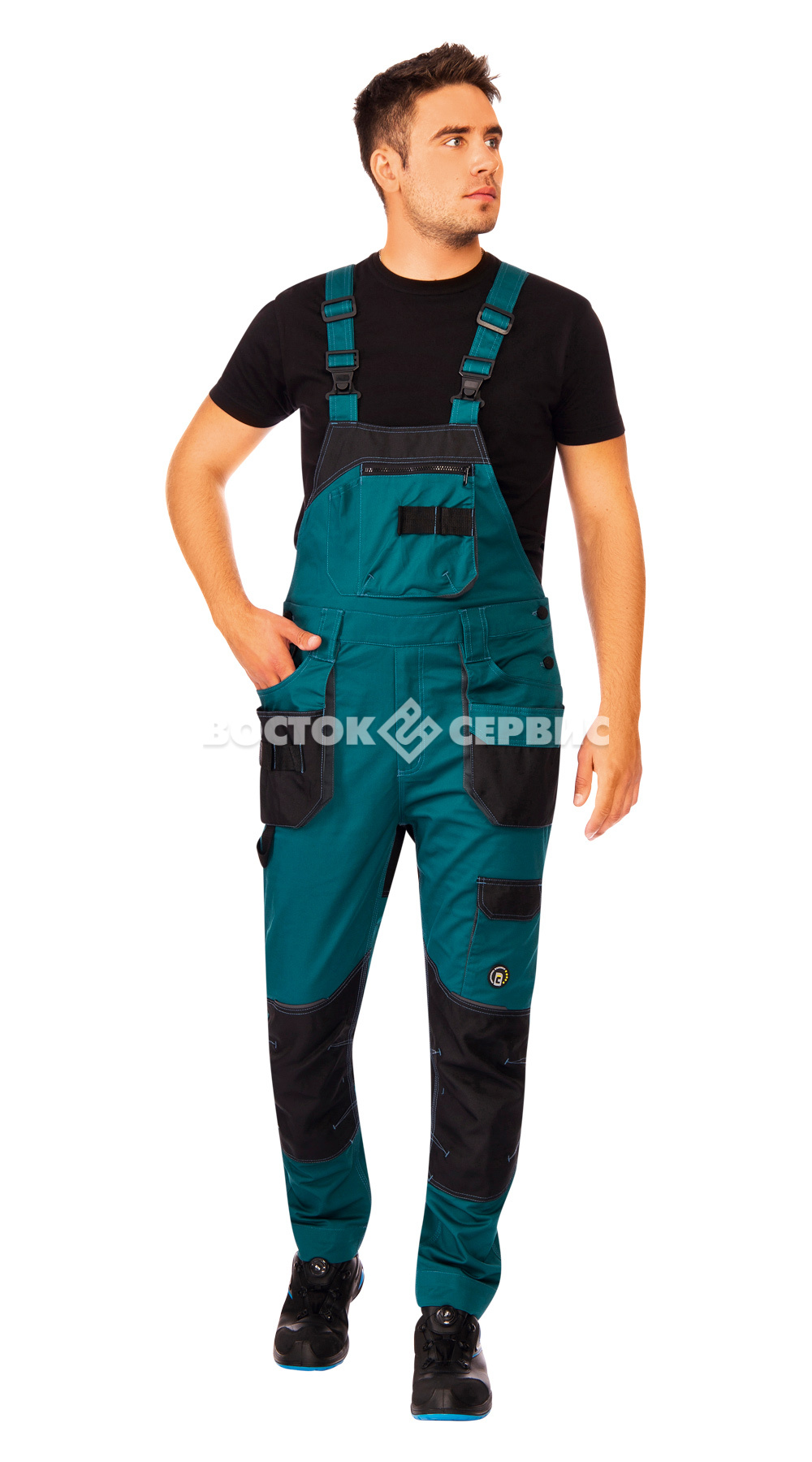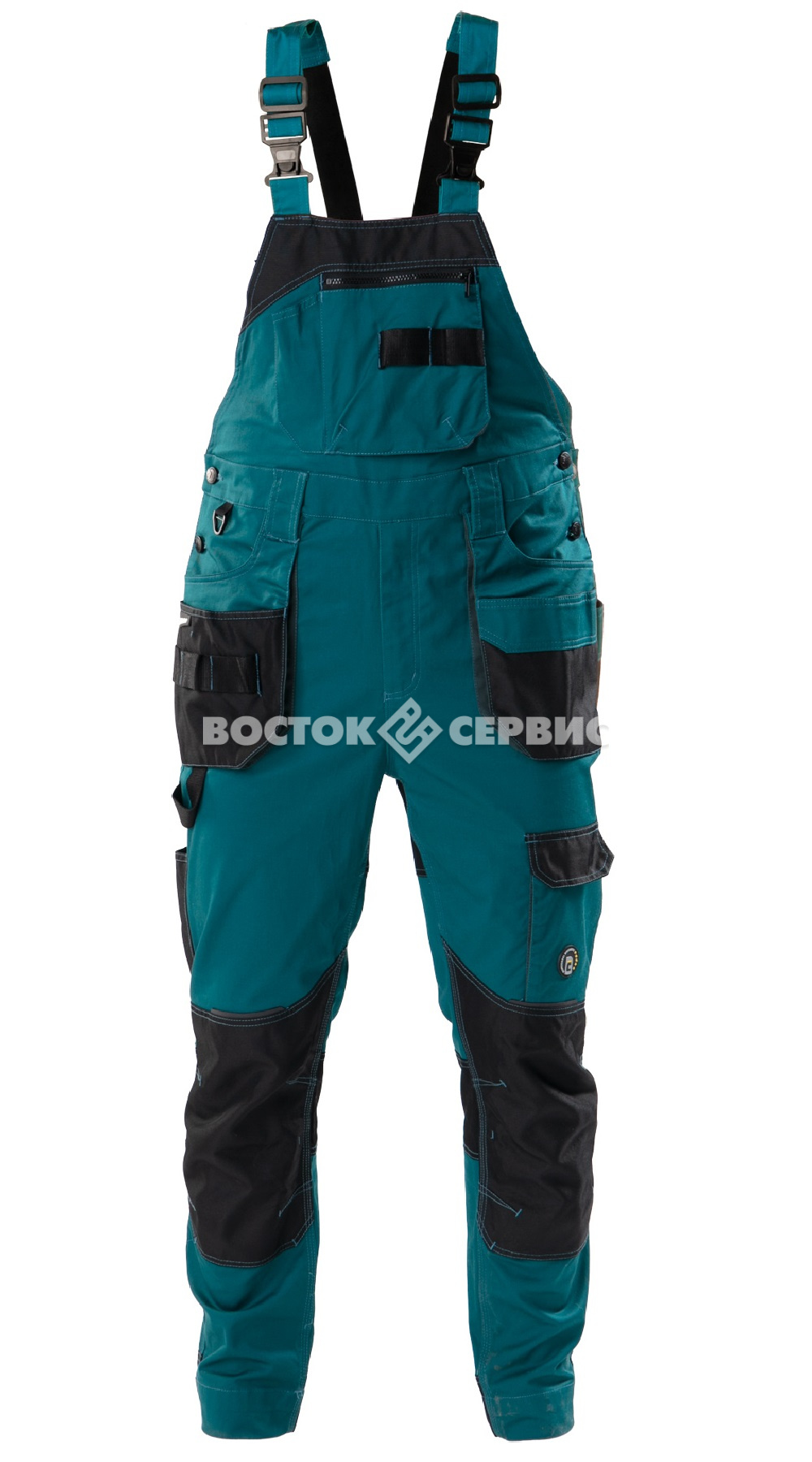 Карманы: нагрудный на молнии, многофункциональные передние двойные карманы со стропой для инструмента, накладныес клапанами на задних половинках, набедренный для телефона с клапаном на липучке, для линейки, для ножа, стропы для инструментов.