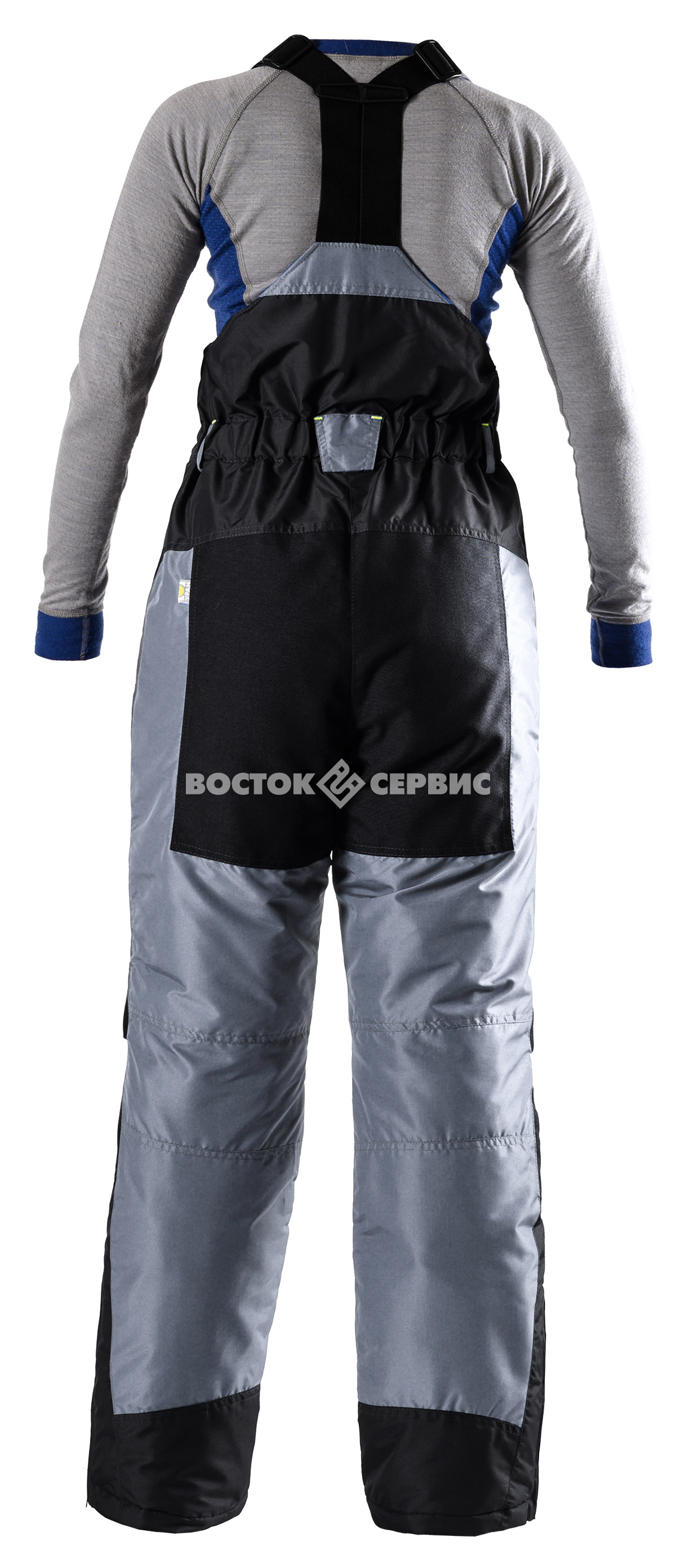 Защитные элементы: наколенники, усилительные накладки на задних половинках, снегозащитная юбка внутри, усилительные накладки по низу брюк.