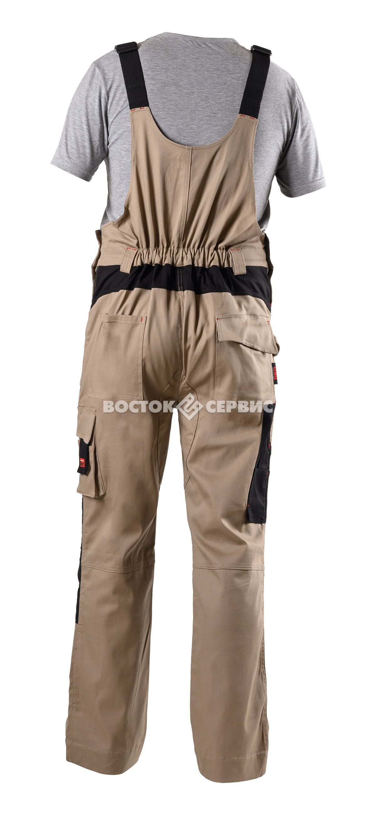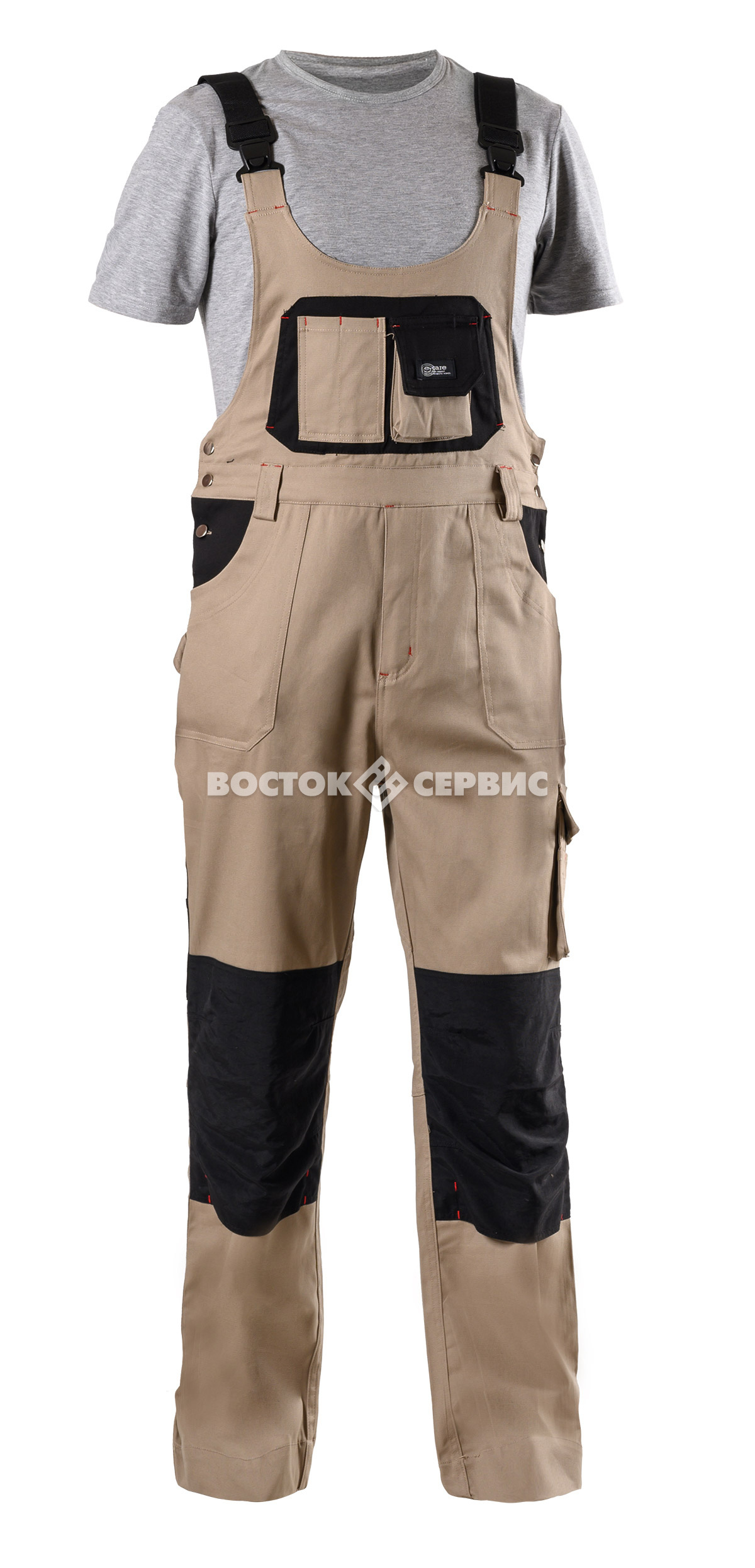 Усилительные накладки: на задних половинках в области среднего и шаговых швов, наколенники из прочной ткани со входами под амортизационные вкладыши.