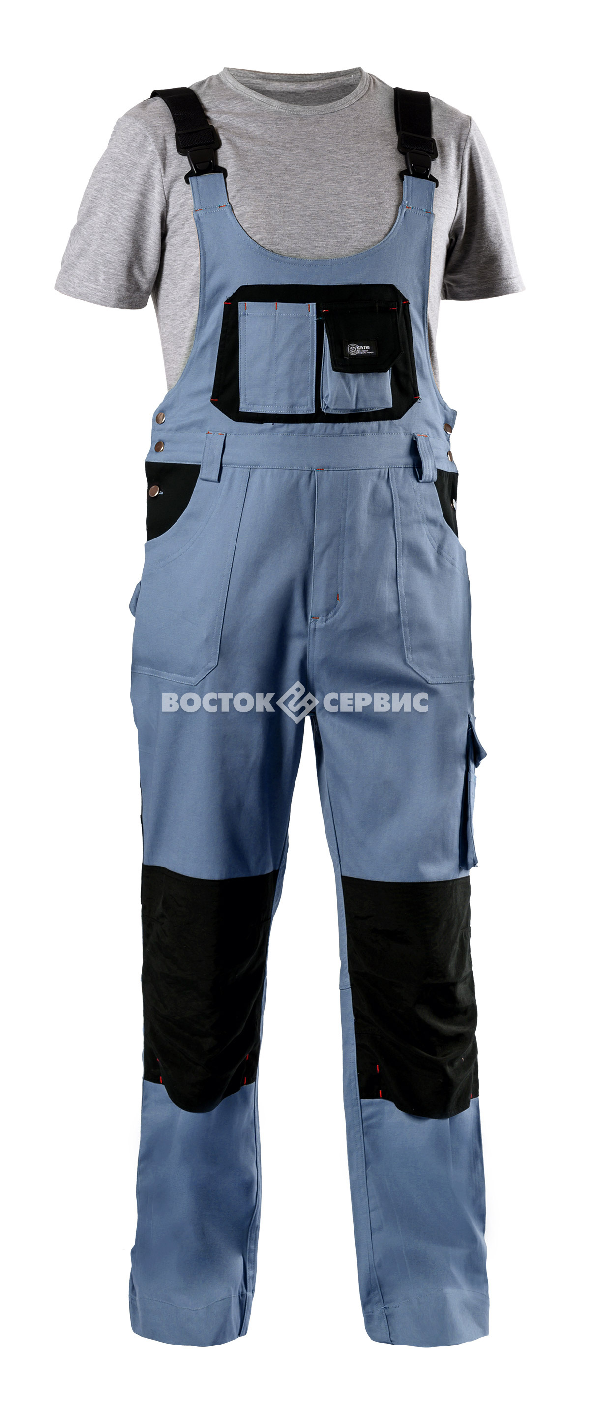 Усилительные накладки: на задних половинках в области среднего и шаговых швов, наколенники из прочной ткани со входами под амортизационные вкладыши.
