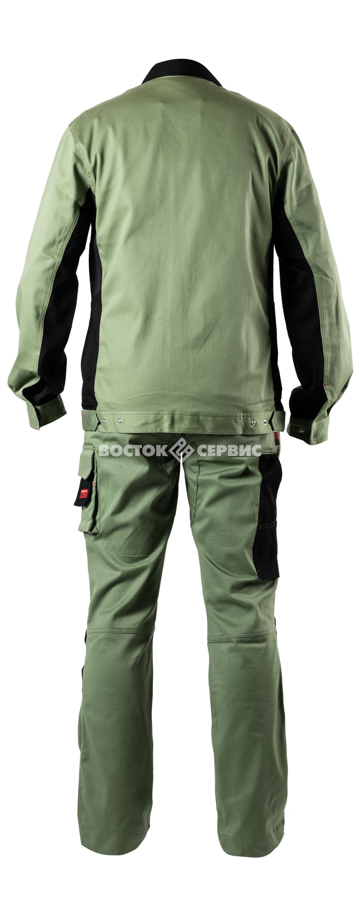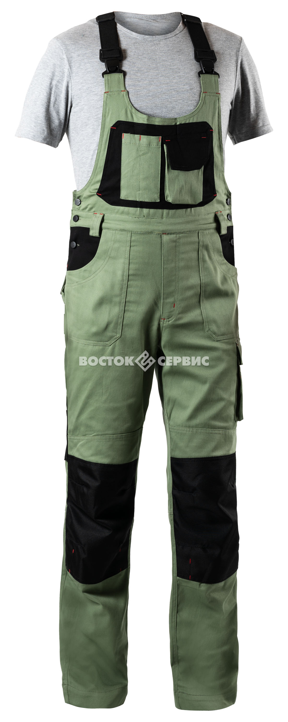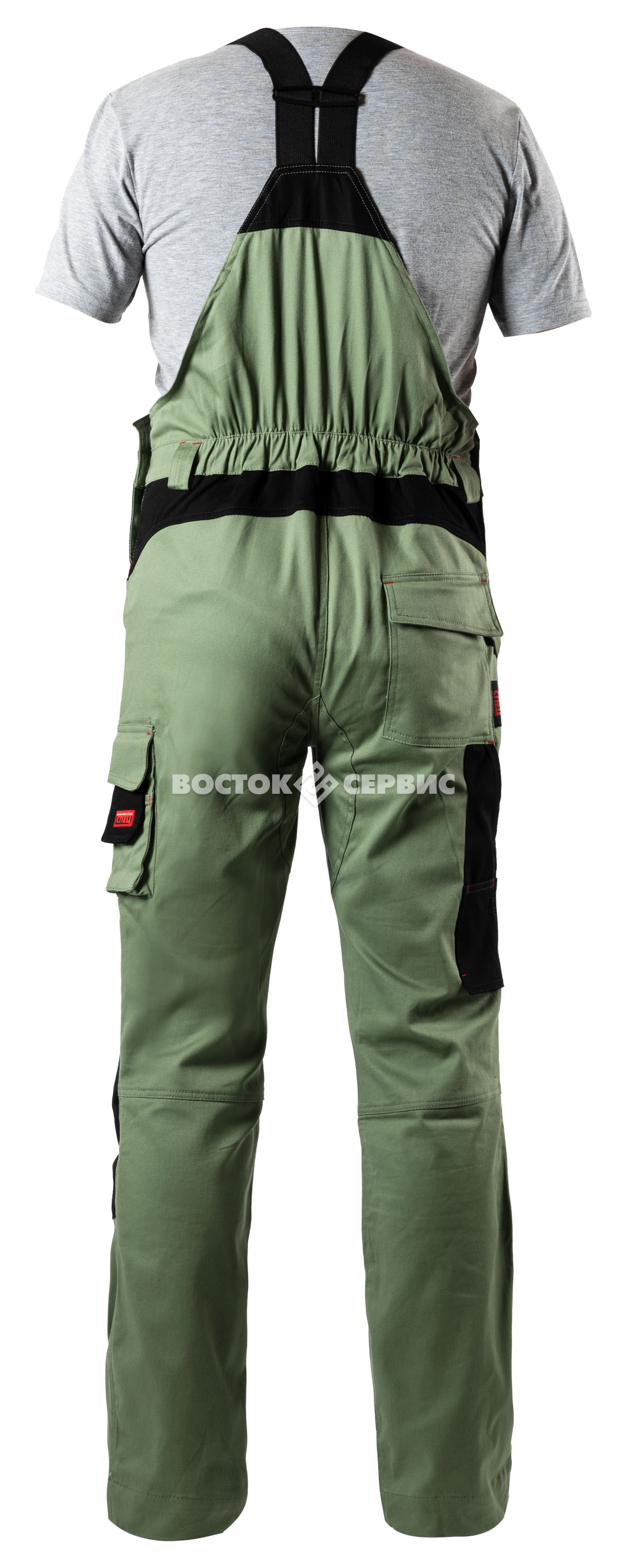 Усилительные накладки: на задних половинках в области среднего и шаговых швов, наколенники из прочной ткани со входами под амортизационные вкладыши.