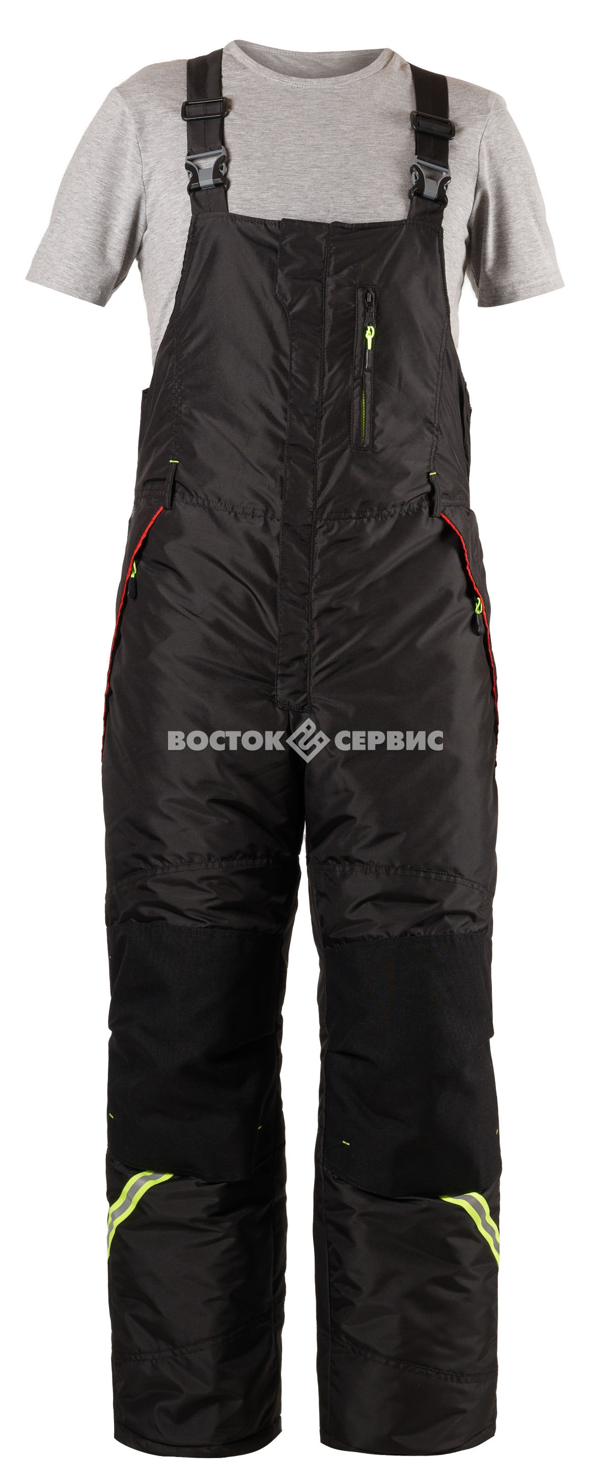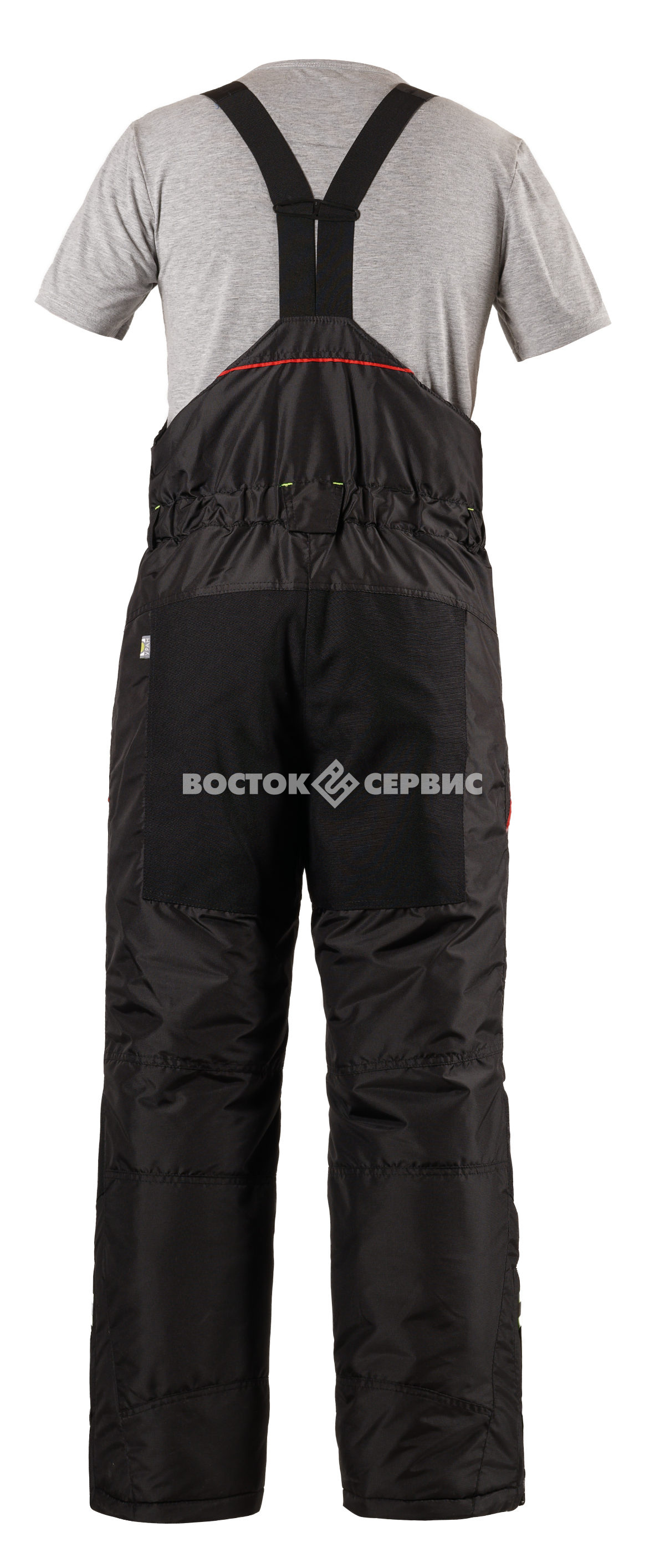 Защитные элементы: наколенники-карманы для амортизационных вкладышей , накладки на задних половинках, внутренние снегозащитные юбки, усилительные накладки по низу полукомбинезона