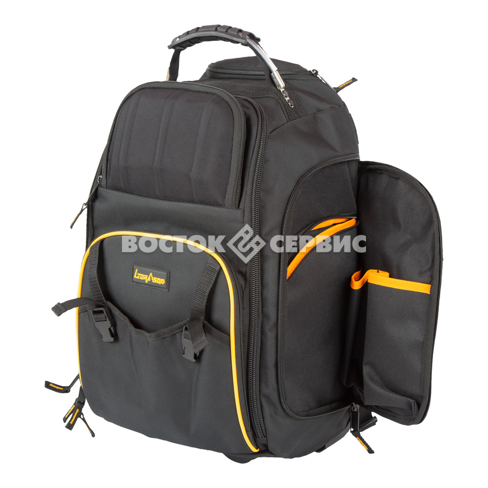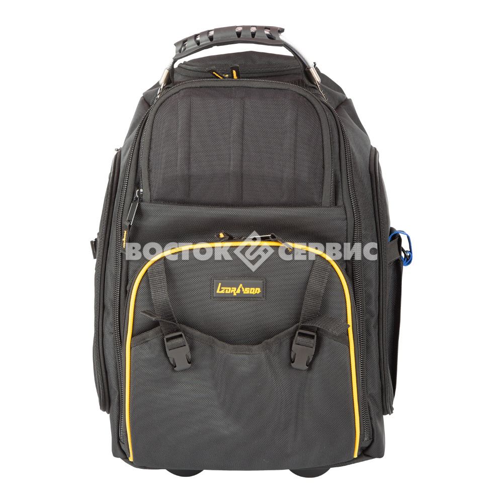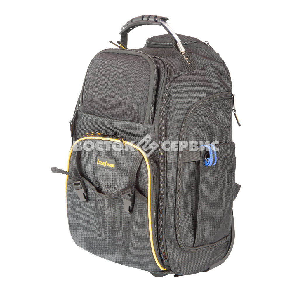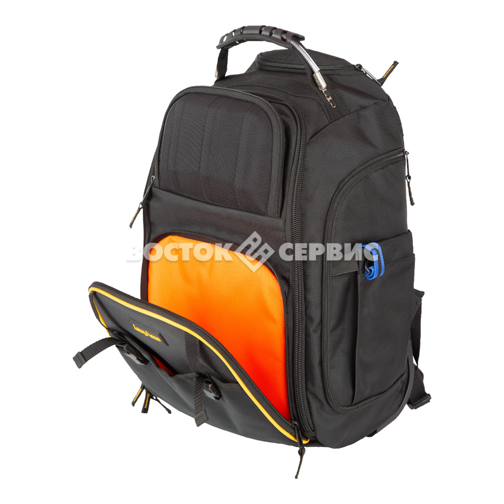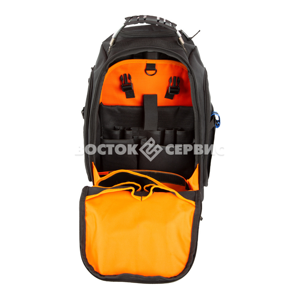 - Для сохранения места и удобного доставания инструментов, полотно с инструментами можно вытащить из центрального отделения и подвесить за люверсы